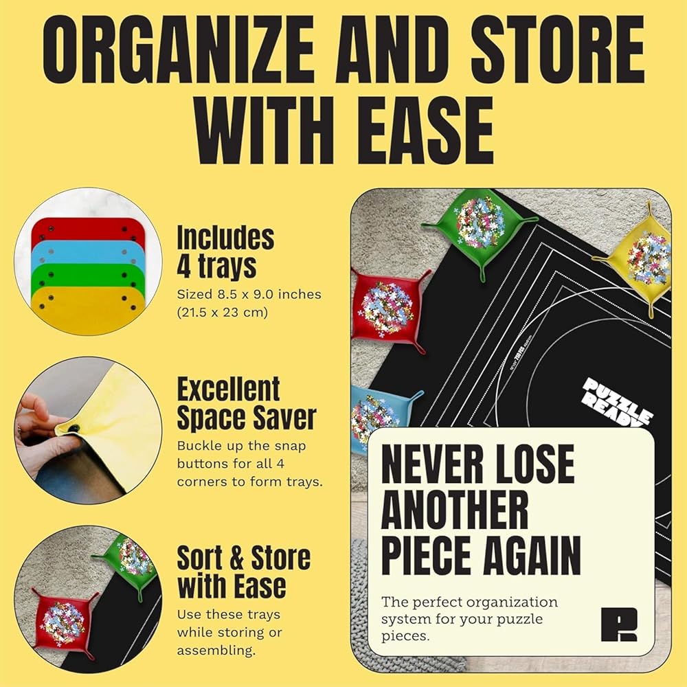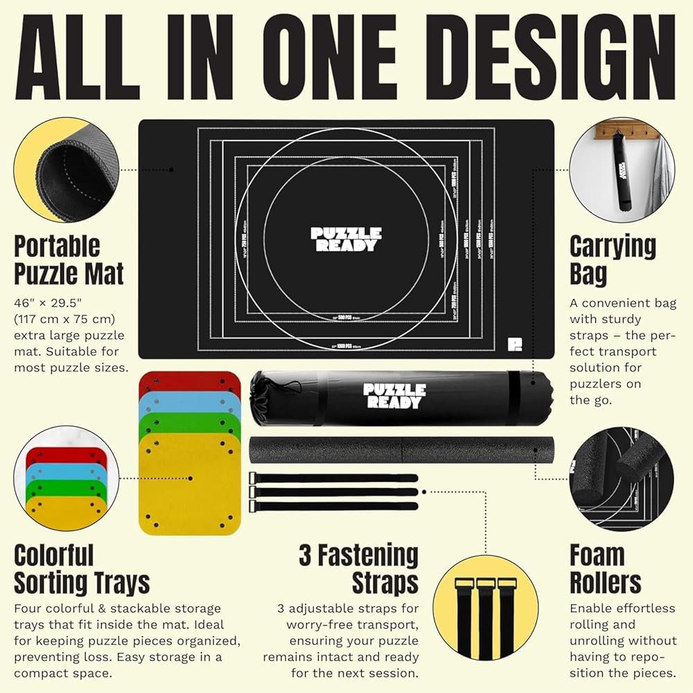 🧩 حجم مثالي لألغاز الصور المقطوعة الخاصة بك: تبلغ مساحة عمل Porta-Puzzle Caddy الجديدة 26.4 بوصة × 36.2 بوصة وتناسب معظم ألغاز الصور المقطوعة المكونة من 1500 قطعة. تساعدك صواني فرز الألغاز الملونة متعددة الأغراض 2 في 1 على تنظيم ألغاز الصور المقطوعة - والحفاظ على ألغازك غير المكتملة آمنة من الحيوانات الأليفة والأطفال حتى المرة القادمة. "هل تريد شيئًا أصغر قليلاً؟ قم بإلقاء نظرة على لوحة الألغاز المكونة من 1000 قطعة!"