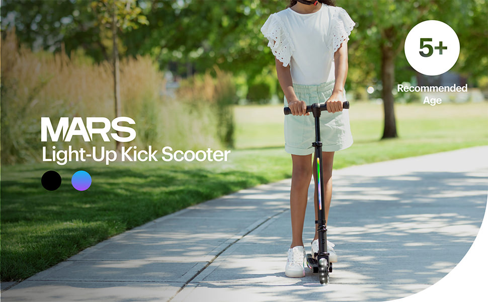 • المواصفات: المريخ هو سكوتر ذو عجلتين مع مقود ارتفاع قابل للتعديل وفرامل قدم خلفية مثالية للمبتدئين. يبلغ مقاس كل عجلتين 4.66 سم. يزن السكوتر 7 أرطال. يتميز السطح ببطانة مضادة للانزلاق وهو الأفضل للأولاد والبنات حتى وزن 150 رطلاً.