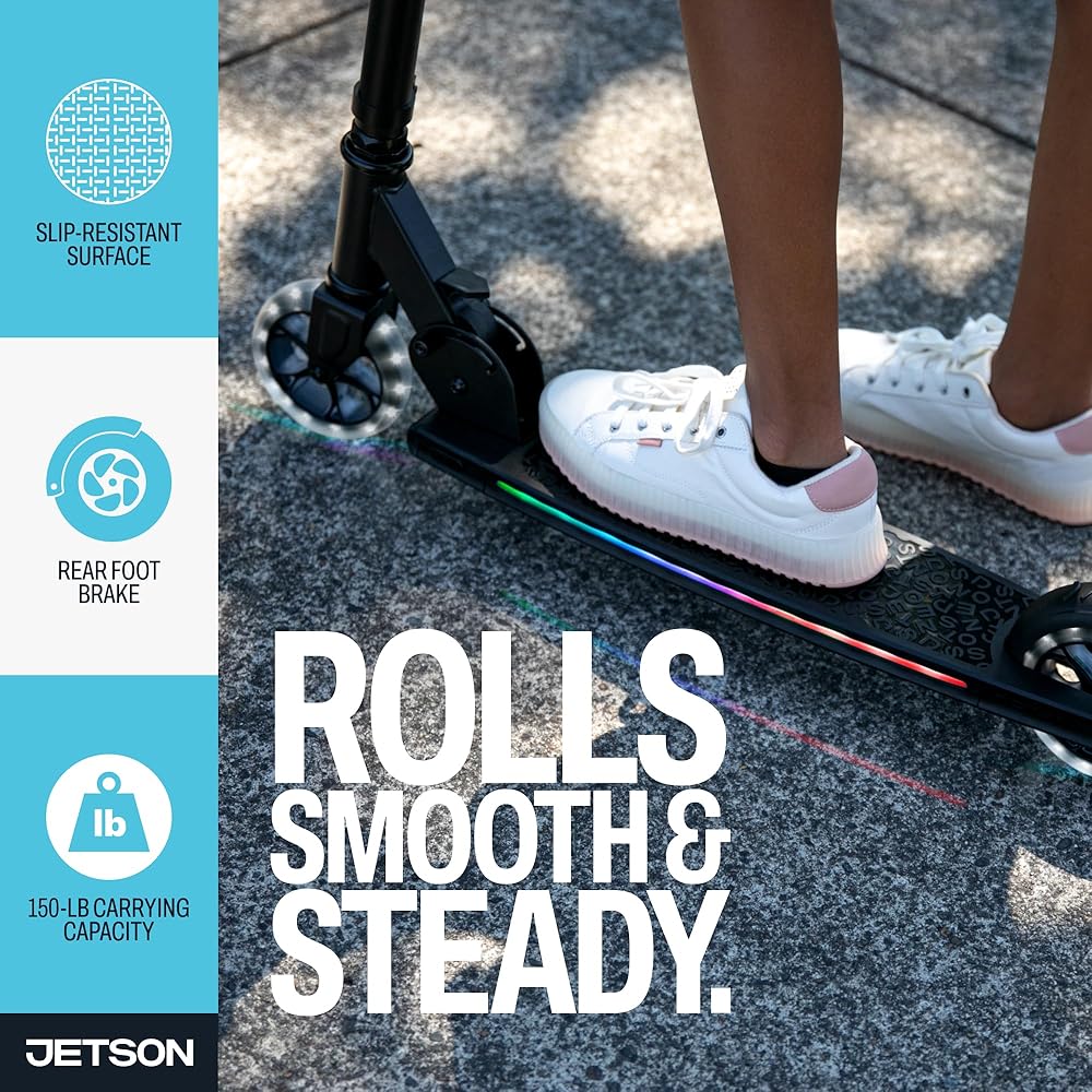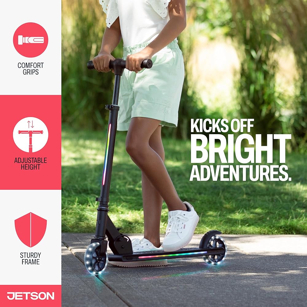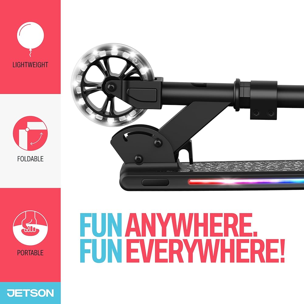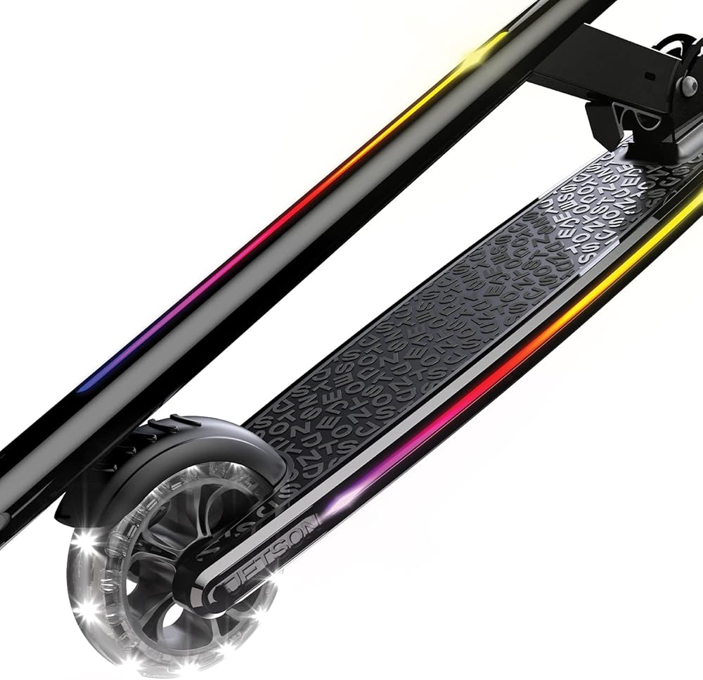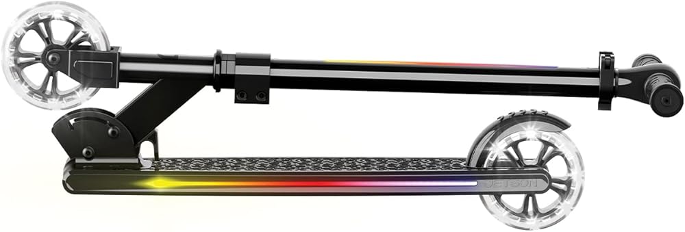 سكوتر جيتسون مارس للأطفال بعجلتين، يتضمن أضواء LED على المقود والجذع والعجلات والسطح، ومقود قابل للتعديل، وفرامل خلفية، وتصميم خفيف الوزن، وآلية سهلة الطي، للأعمار من 5 سنوات فما فوق
