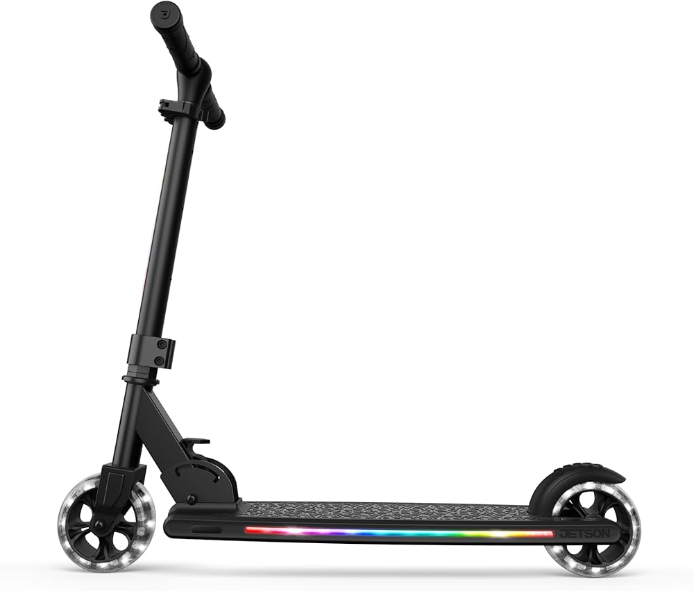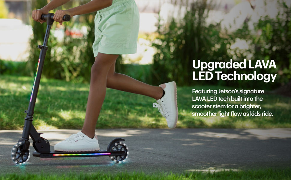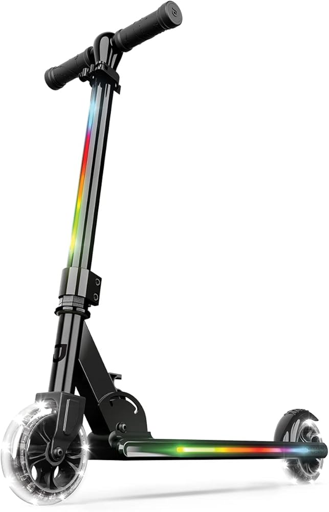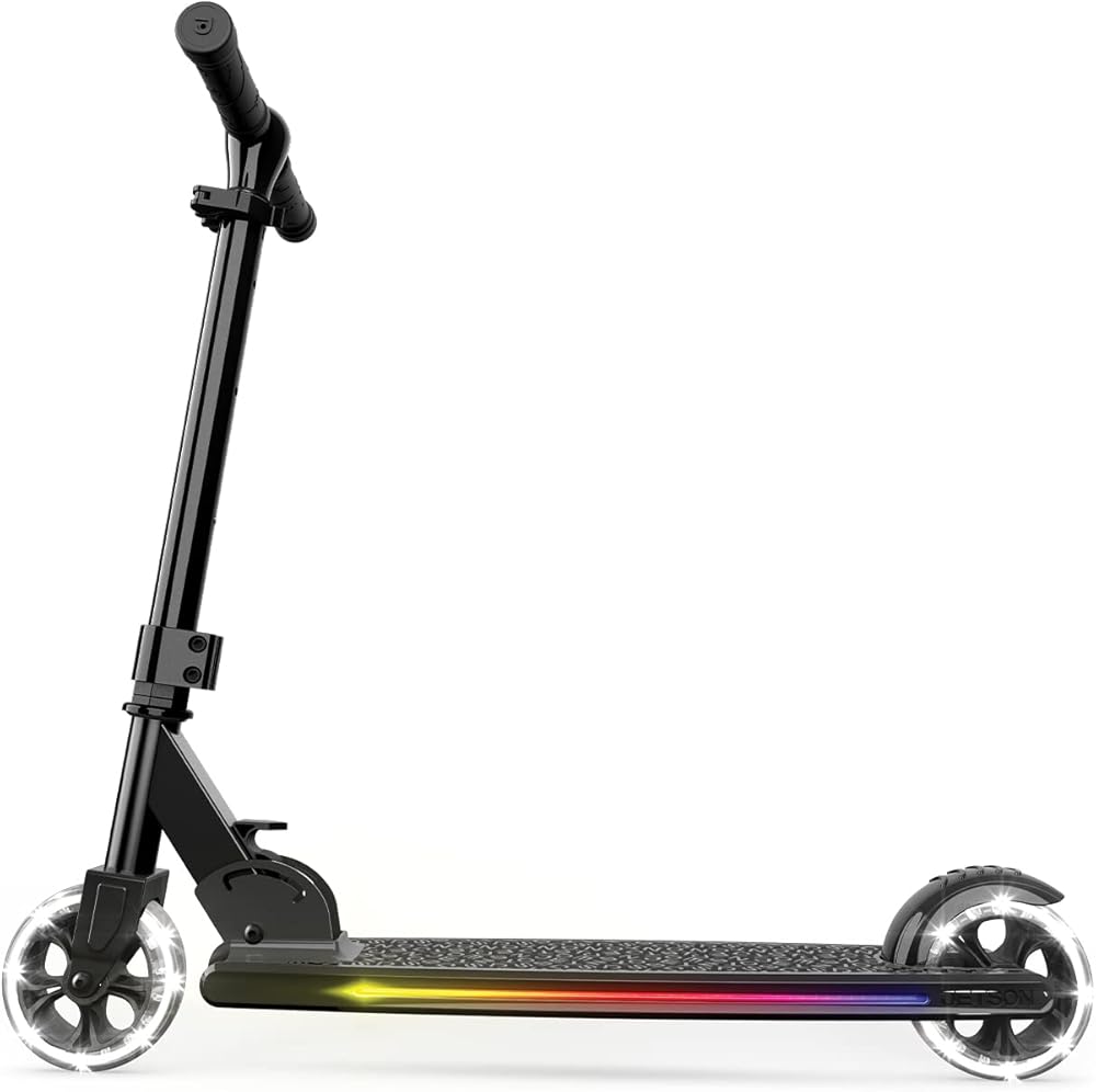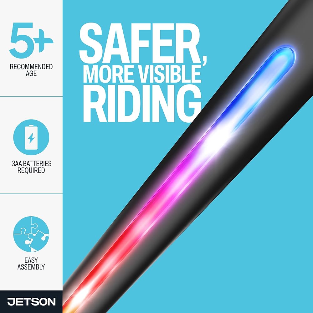 سكوتر جيتسون مارس للأطفال بعجلتين، يتضمن أضواء LED على المقود والجذع والعجلات والسطح، ومقود قابل للتعديل، وفرامل خلفية، وتصميم خفيف الوزن، وآلية سهلة الطي، للأعمار من 5 سنوات فما فوق