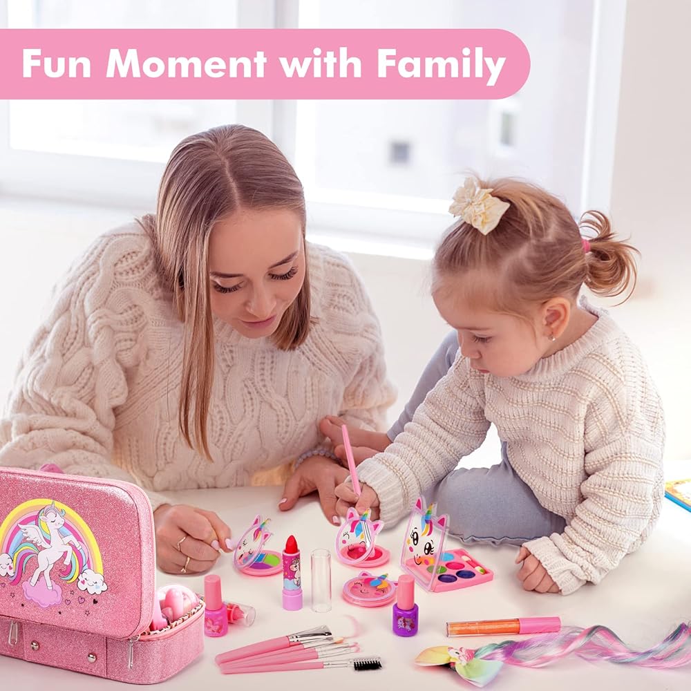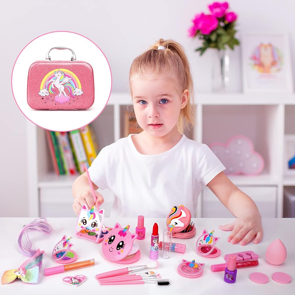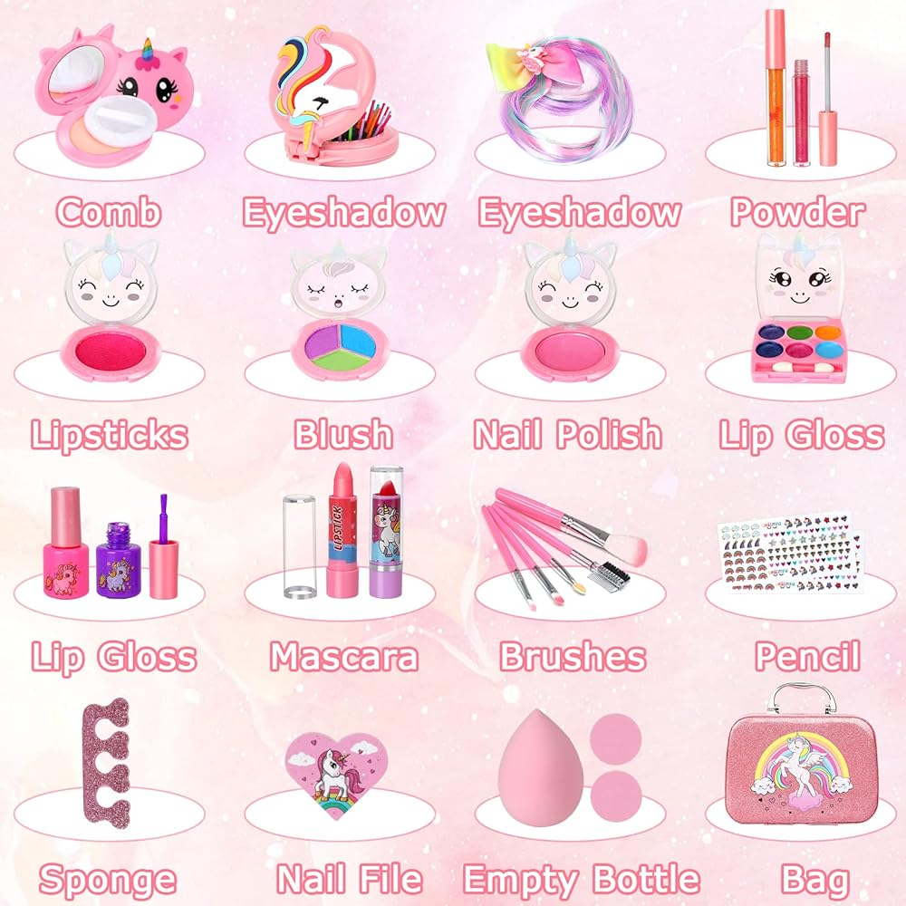 تصميم فريد ولطيف: تم دمج مجموعة مكياج الأطفال هذه للفتيات خصيصًا مع موضوع وحيد القرن الكرتوني اللطيف، وهي خيار رائع للفتيات الصغيرات اللاتي يعجبن مجموعة مكياج الأطفال أحادي القرن. يمكن لحقيبة المكياج ذات السعة الكبيرة أن تحمل بسهولة جميع ملحقات المكياج اللطيفة والأشياء الأخرى، وهي مناسبة للخروج للمشاركة في حفلات المكياج وألعاب لعب الأدوار للأميرات.