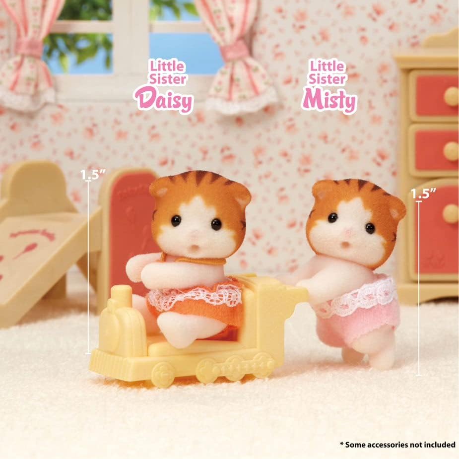 تعتبر بيوت الدمى المصغرة ومجموعات اللعب والشخصيات من كاليكو كريترز ألعابًا خالدة وكلاسيكية عالية الجودة. تتضمن مجموعة القطة الفارسية التوأم شخصيتين صغيرتين قابلتين لاتخاذ الوضعيات، بيلامي وليا. الصبي التوأم، بيلامي يحب ركوب الخيل. يلعب بألعاب الركوب أكثر من أي شخص آخر. تحب الفتاة التوأم ليا رسم الأخاديد على المباني والأثاث بيديها. صور المدينة هي المفضلة لديها. يبلغ طول الشخصية المزدوجة حوالي 1.5 سم. مناسبة للأطفال من سن 3 سنوات فما فوق.