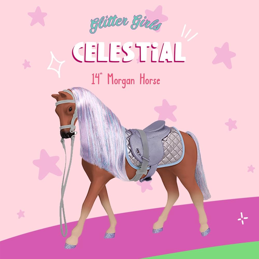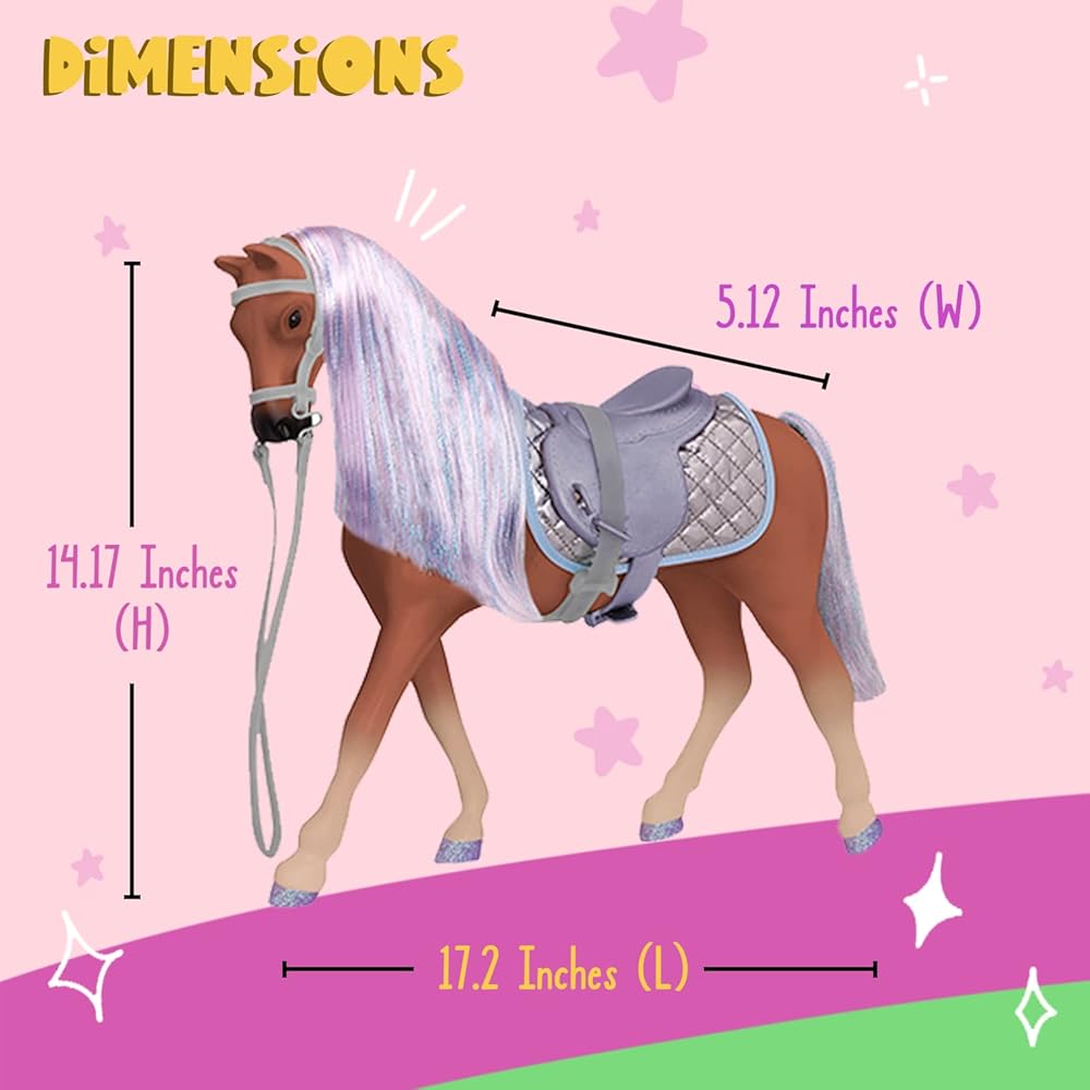 حصان "ستارلايت" - انطلق إلى الخيال مع لعبة الحصان الجميلة هذه مقاس 14 بوصة (36.8 سم)، الرفيق المتألق المثالي لدمى جليتر جيرلز مقاس 14 بوصة!