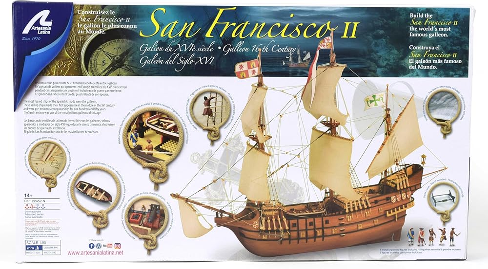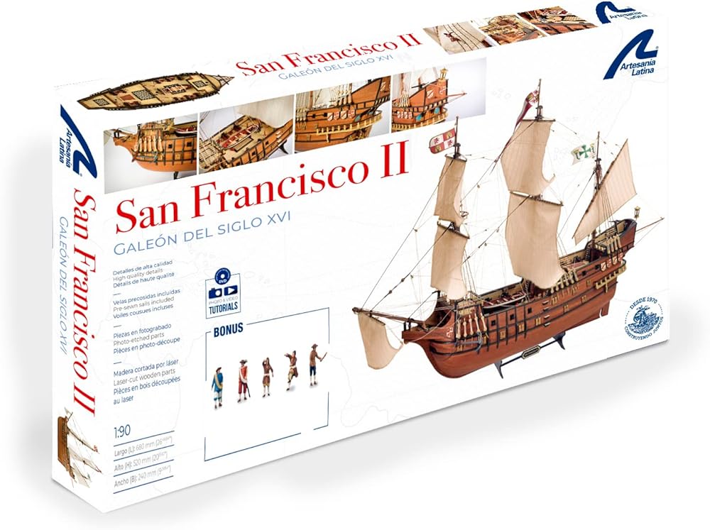 Artesanía Latina – نموذج سفينة خشبية – Spaniard Galleon، San Francisco II – نموذج 22452N، مقياس 1:90 – نماذج للتجميع – المستوى المتوسط