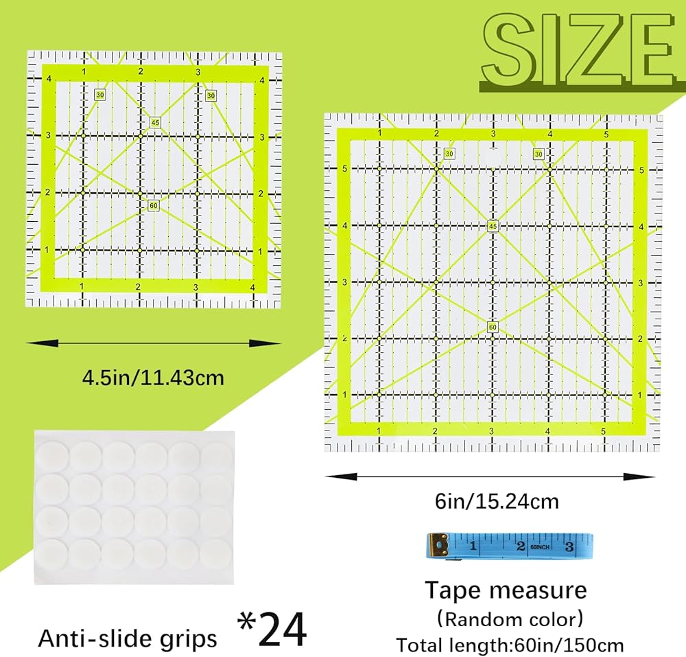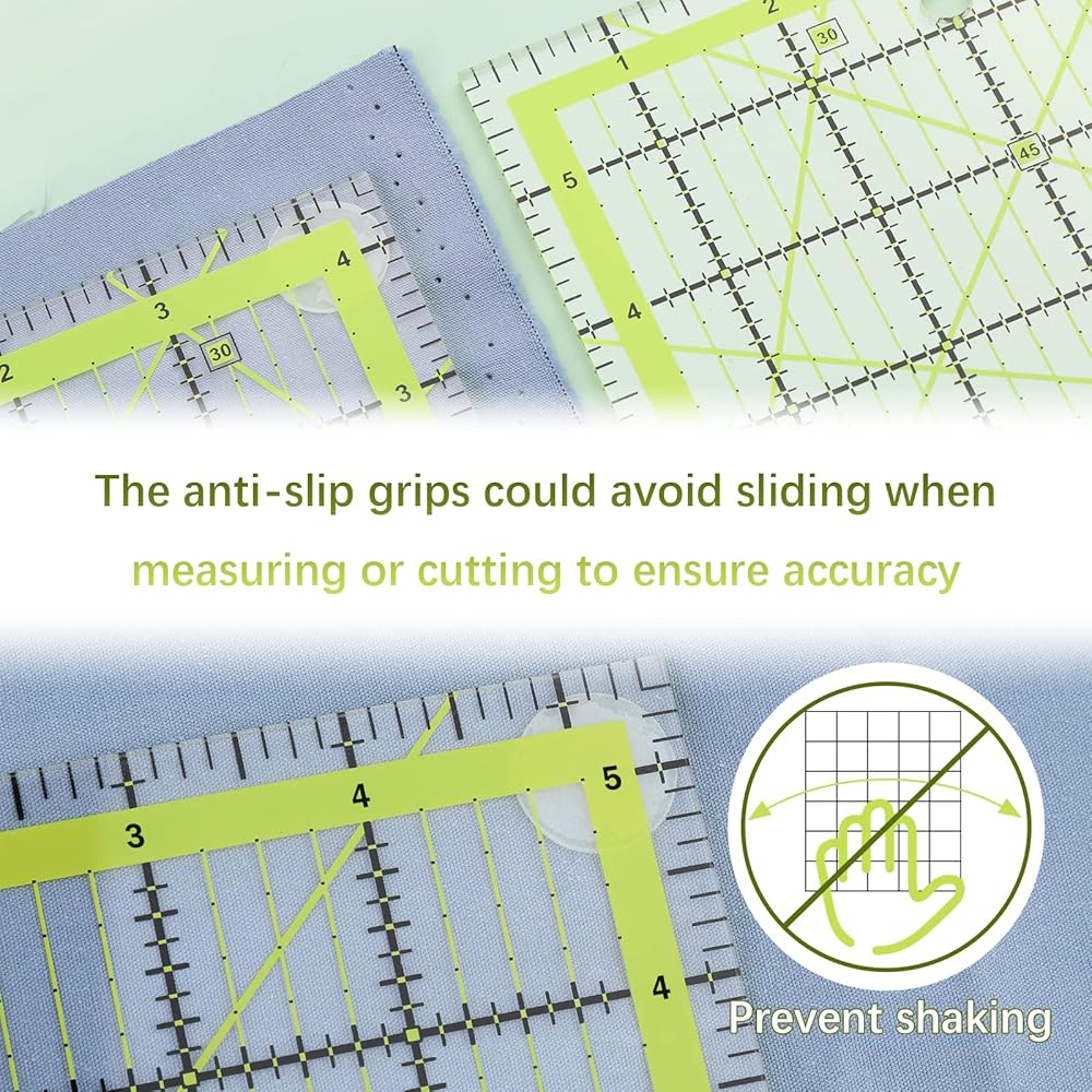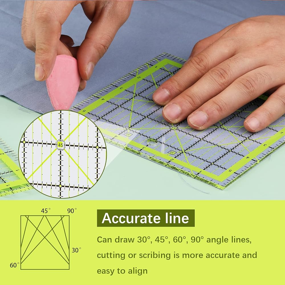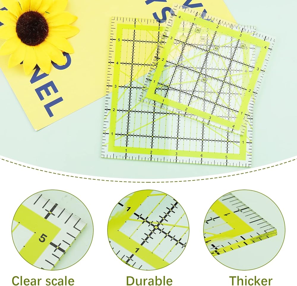 مساطر الخياطة المتينة: مساطر الخياطة هذه مصنوعة من الأكريليك. المقاييس الشفافة والدقيقة للغاية تجعلها مساطر لحاف عالية الجودة. بالإضافة إلى ذلك، فإن مساطر الخياطة الأكريليك متينة وتدوم طويلاً وليس من السهل كسرها.