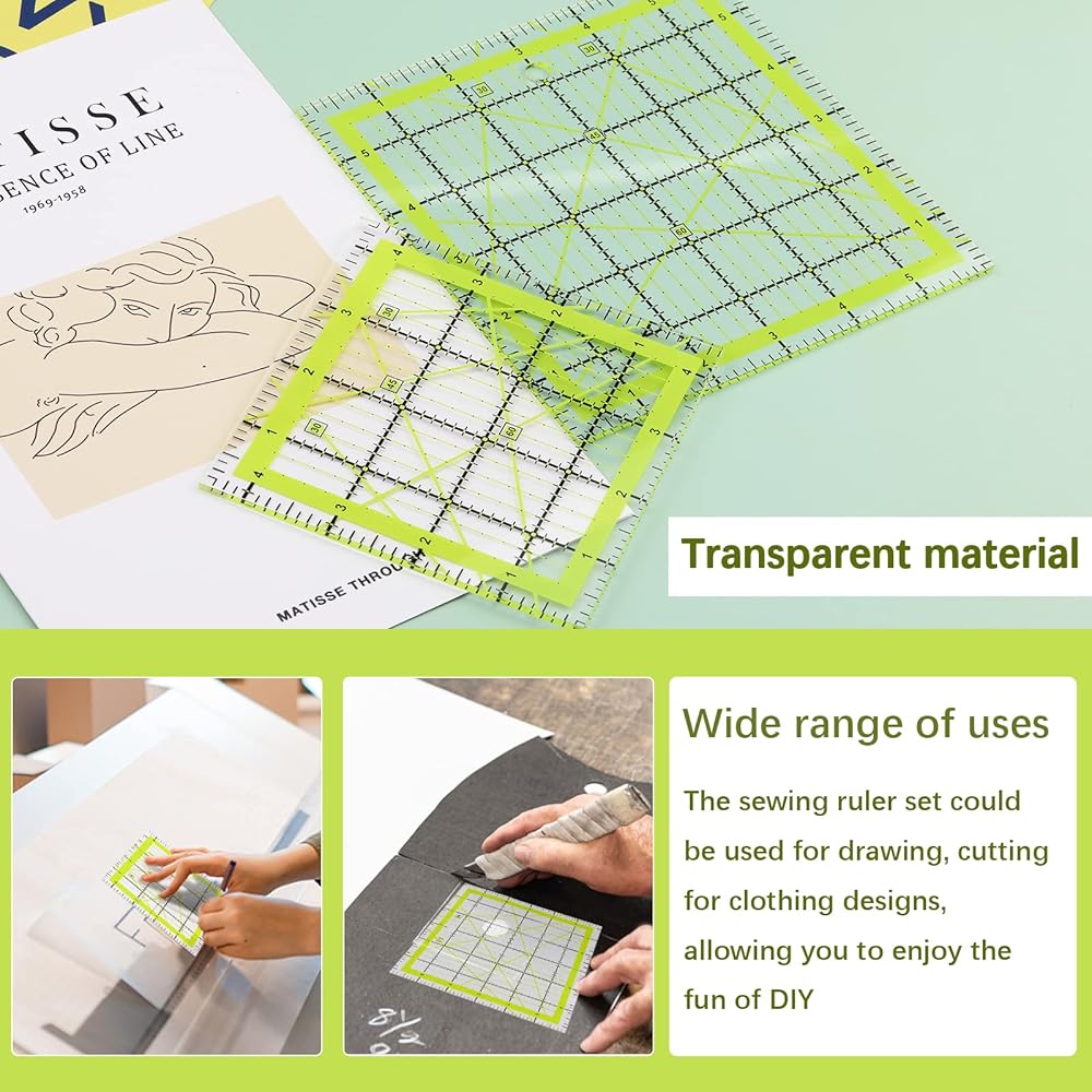 التطبيق: مساطر الخياطة هذه مصنوعة من مواد أكريليك عالية الجودة. وهي مصممة للقياس، وخياطة اللحف، والرسم، وقطع القماش، والخياطة، وصناعة الحرف القماشية.