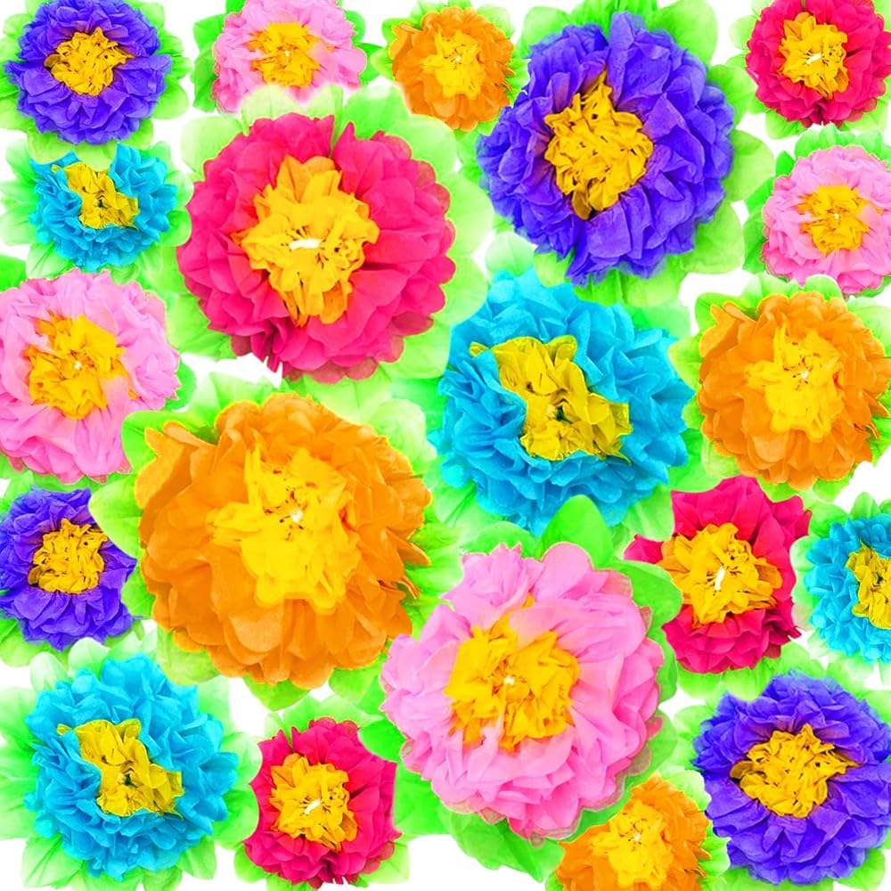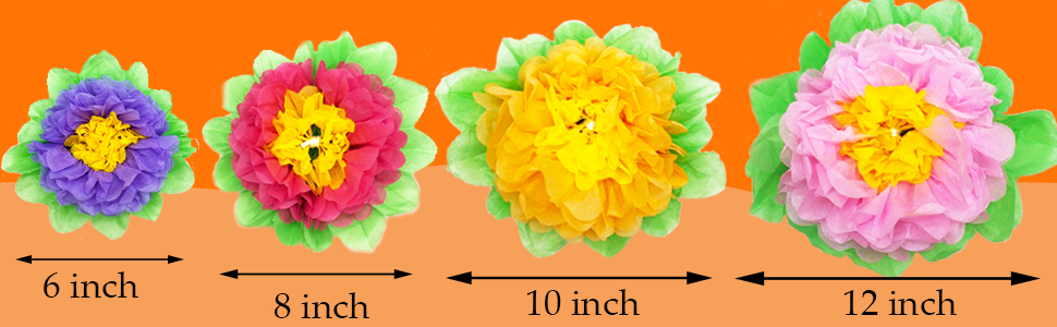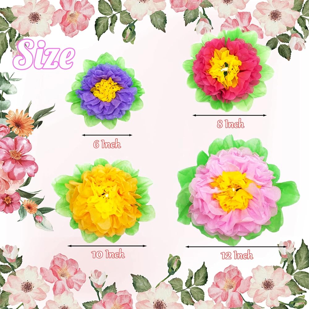 🌼محتويات العبوة: 20 زهرة ورقية إجمالاً، 4 مقاسات، 6/8/10/12 انش، 5 قطع لكل منها. 5 ألوان: بينك وأحمر وأزرق وأرجواني وبرتقالي وألوان زاهية ومقاسات مختلفة يمكن أن تلبي ديكورك للمناسبات المختلفة.
