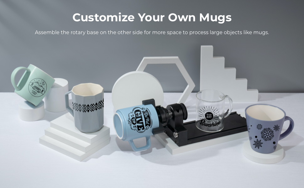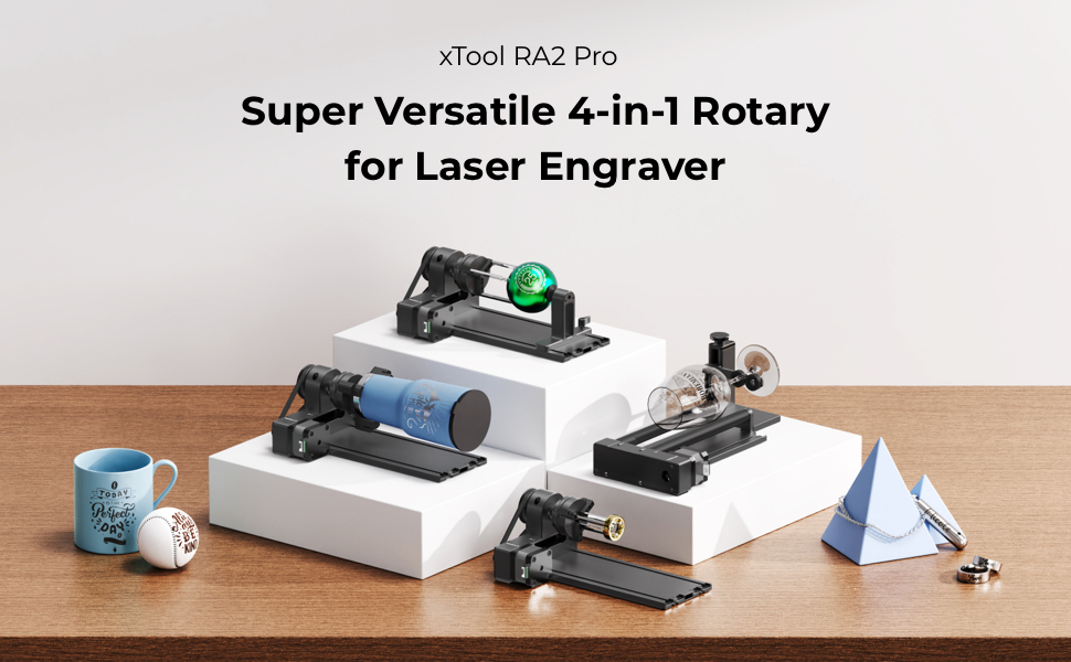 . xTool RA2 Pro هو أول ملحق دوار ليزر 4 في 1 في العالم، بما في ذلك الأسطوانة الدوارة، ودوارة تشاك، ووحدة النقش الكروي، ومسمار النقش الدائري. يمكنك إطلاق العنان لإبداعك على جميع الأسطوانات تقريبًا من خلال تغيير الملحقات، مثل كأس النبيذ أو كوب اليتي أو مضرب البيسبول أو الخاتم أو الكرة أو الكوب بمقبض.