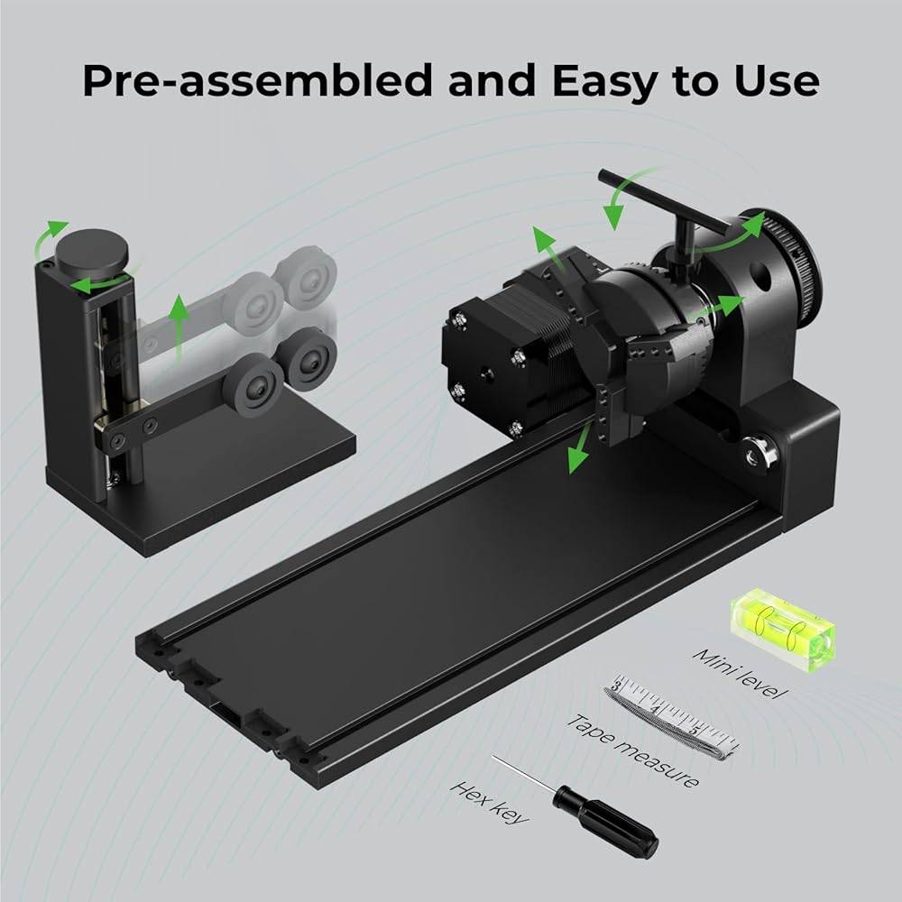 𝐃𝐮𝐫𝐚𝐛𝐥𝐞 𝐌𝐚𝐭𝐞𝐫𝐢𝐚𝐥 𝐚𝐧𝐝 𝐔𝐬𝐞𝐟𝐮𝐥 𝐃𝐞𝐬𝐢𝐠 𝐧: مصنوعة من سبائك الألومنيوم المؤكسدة مع طلاء مقاوم للتآكل لضمان الاستخدام الموثوق به على المدى الطويل. بالمقارنة مع الملحقات الدوارة الأخرى، يضيف الملحق الدوار RA2 Pro محور Z قابل للتعديل ووحدة دوارة للظرف. يدعم نقوش 360 درجة على أسطوانة طويلة للغاية وأسطوانات غير منتظمة مثل علب المشروبات وأكواب قشر البيض والكؤوس وزجاجة النبيذ والبيسبول ومضرب البيسبول