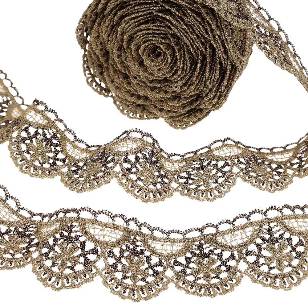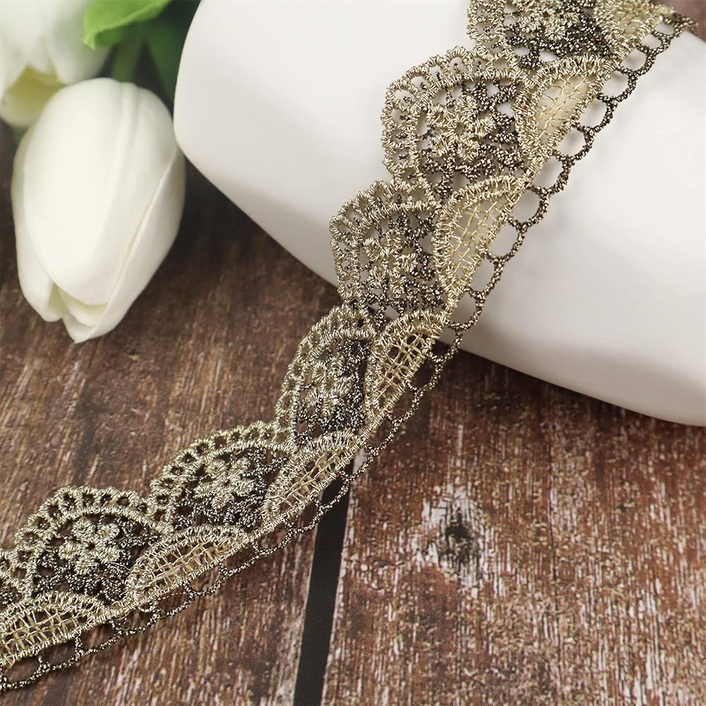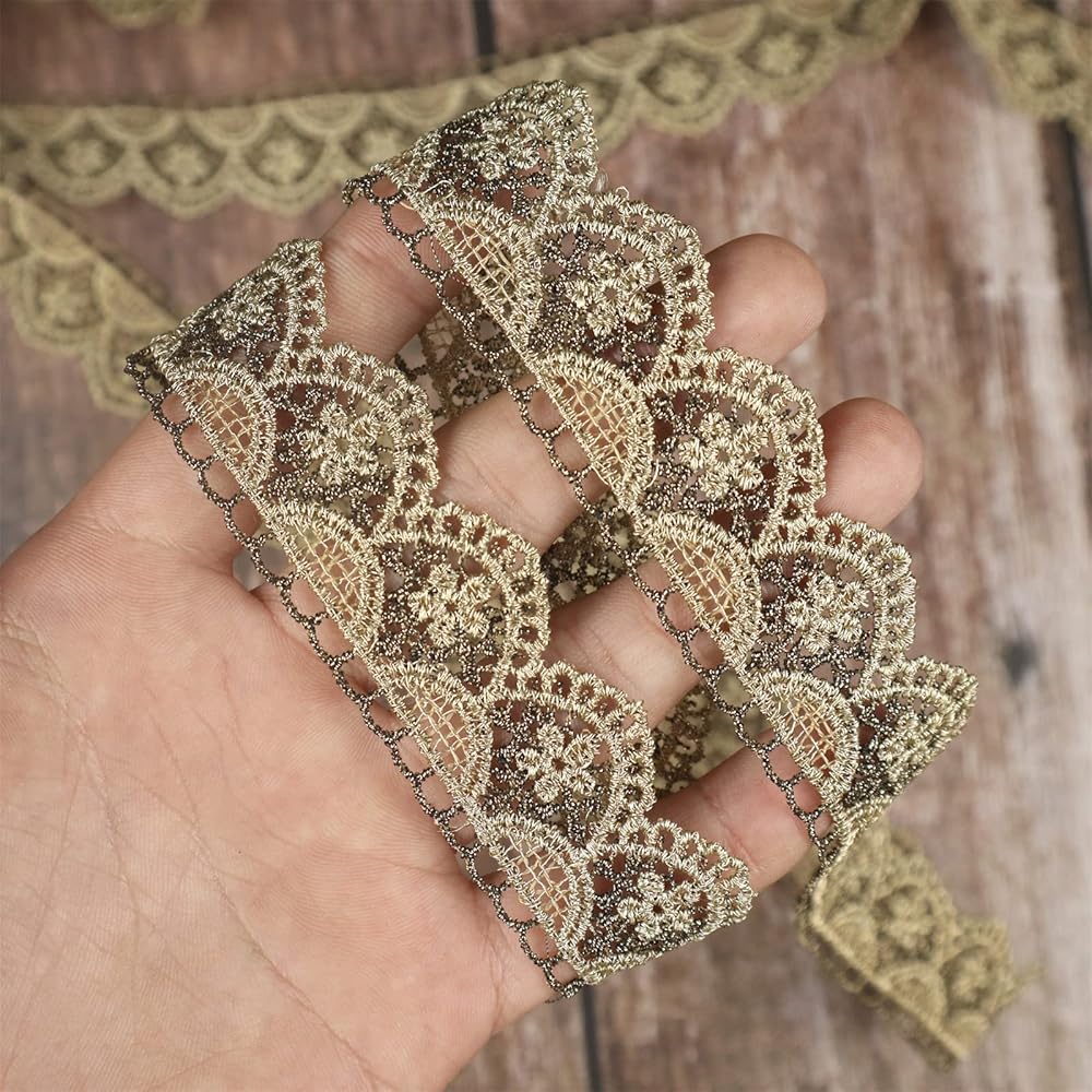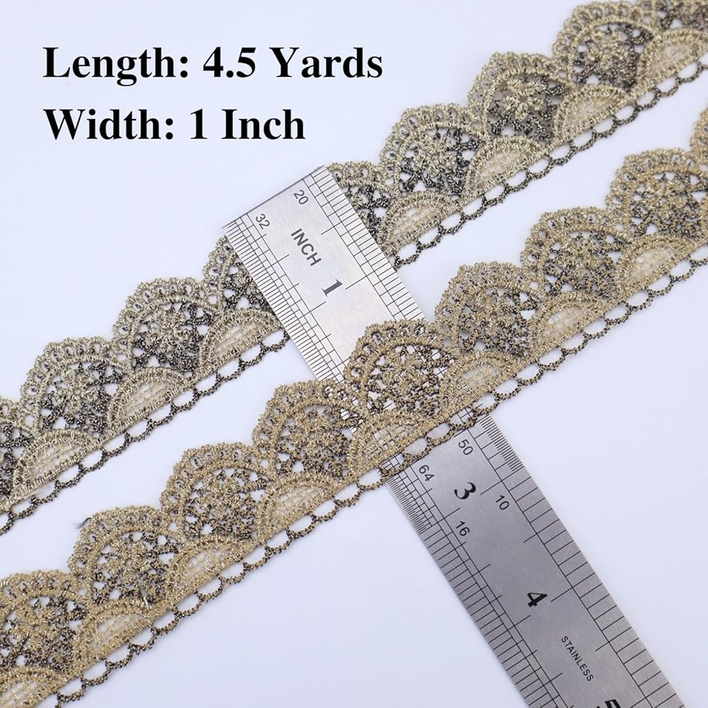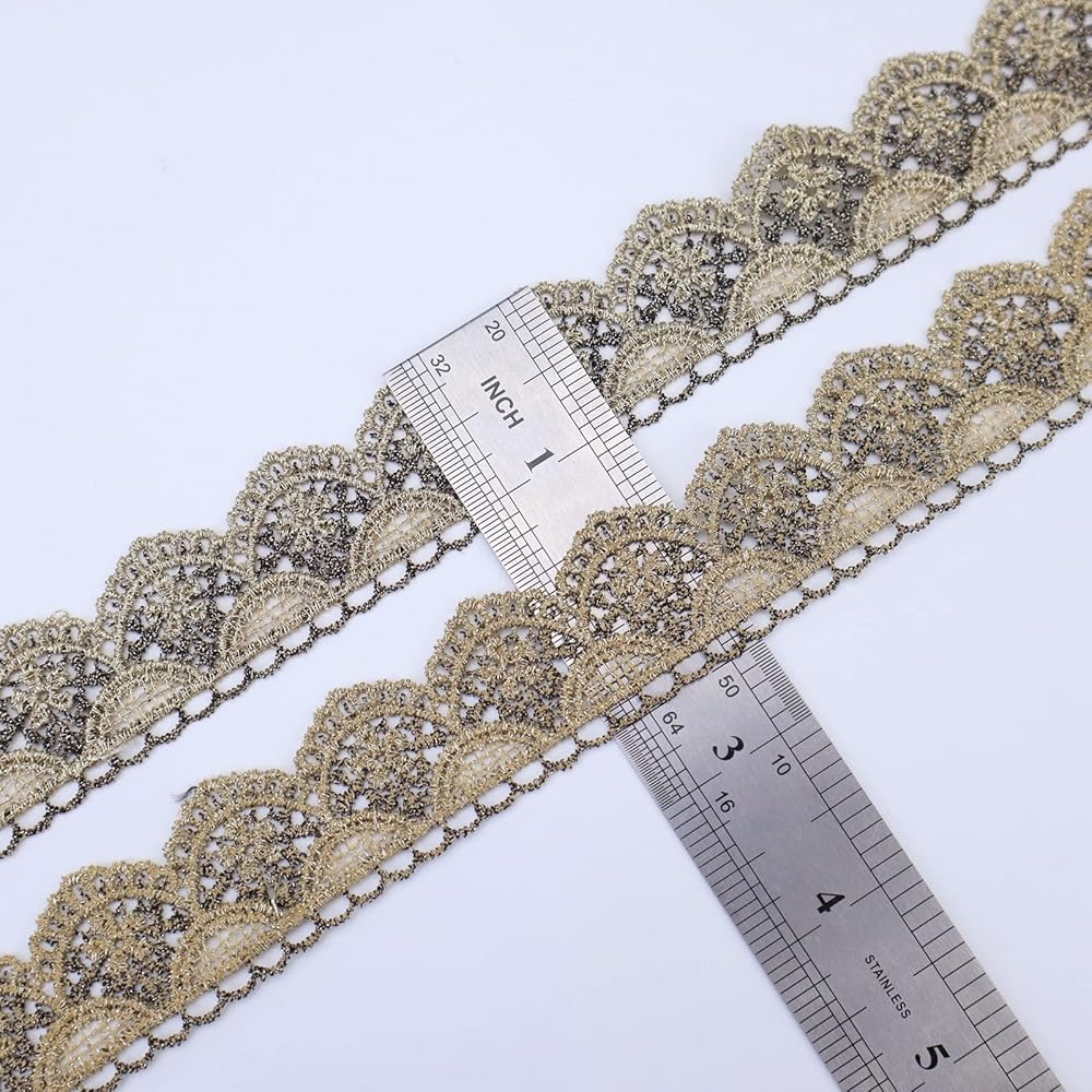 شريط ذهبي عتيق من الدانتيل، شريط دانتيل خياطة معدنية مطرز بحافة صدفية من نسيج الدانتيل للحرف اليدوية الزخرفية، عرض 1 بوصة 4.5 ياردة (نصف دائرة)