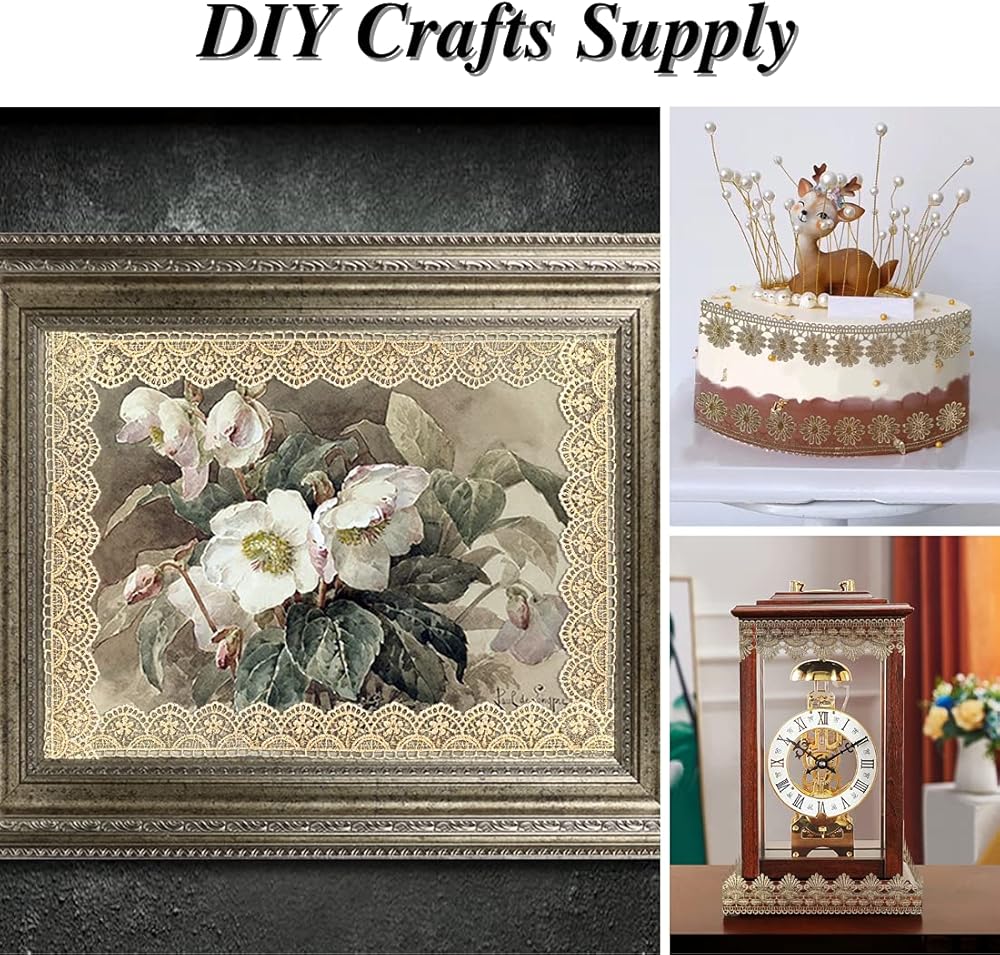• الاستخدام: هذه الزخرفة المصنوعة من الدانتيل الذهبي مثالية لتاج التاج والمجوهرات وفستان الزفاف والكعك وتزيين الحفلات المنزلية وما إلى ذلك.