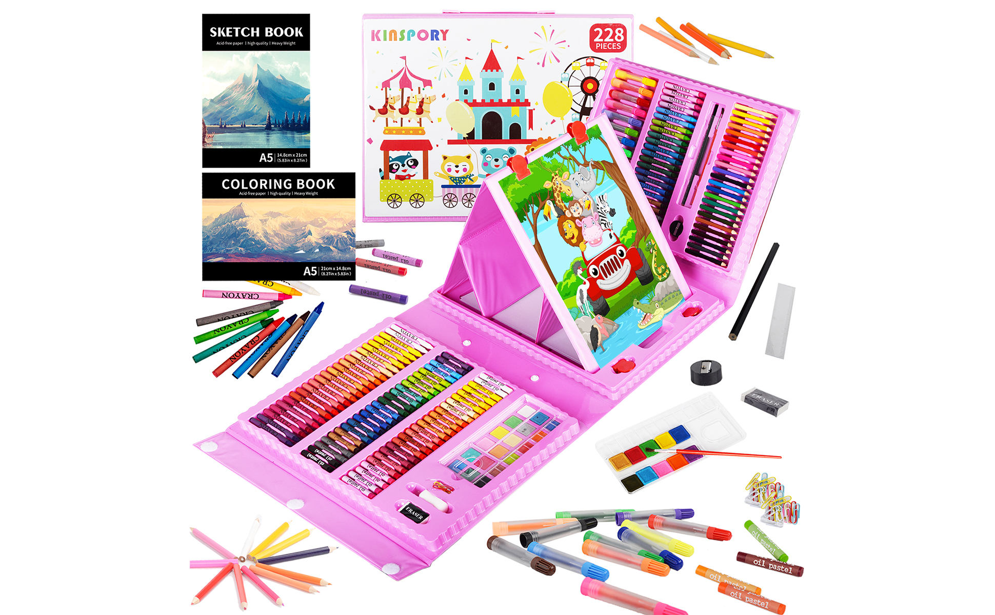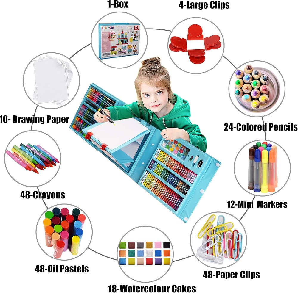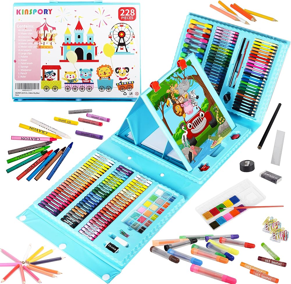 ★【هدية رائعة للفتيات والأولاد والمراهقين والأطفال 4 5 6 7 8 9 10 11 12】يوصى بشدة بمجموعة التلوين الفنية للأطفال فوق 4 سنوات الذين يرغبون في تعلم الأعمال الفنية الإبداعية. لا تنخدع بالعلبة البلاستيكية والتسويق الموجه للأطفال لهذا المنتج. ستجد في الداخل مجموعة رائعة من أقلام التلوين وأقلام التحديد وأقلام الرصاص الملونة - 228 قطعة إجمالاً. يمكنك إخفاؤها في درج للعطلات وأعياد الميلاد وهدية الكريسماس عند زيارة الأطفال، وستكون مفاجئة، كما أنها مجموعة أدوات مدرسية لطيفة ورائعة.