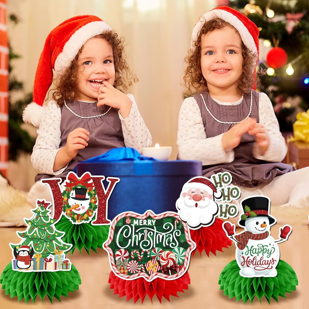 جودة متينة: مجموعة ديكورات طاولة عيد الميلاد مصنوعة من ورق عالي التحمل على الوجهين وأجرام على شكل قرص العسل. اعتماد طباعة رقمية عالية التقنية مع لمعان يشبه الصورة، ومغلفة بفيلم الحيوانات الأليفة، وهو ناعم ومقاوم للماء ومقاوم للتمزق ويمكن تطبيقه لفترة أطول. قطعة مركزية مثالية لطاولة عيد الميلاد تستخدم كزينة عيد الميلاد في الأماكن المغلقة، وزينة طاولة عيد الميلاد، وقطع مركزية لحفلات عيد الميلاد للطاولات