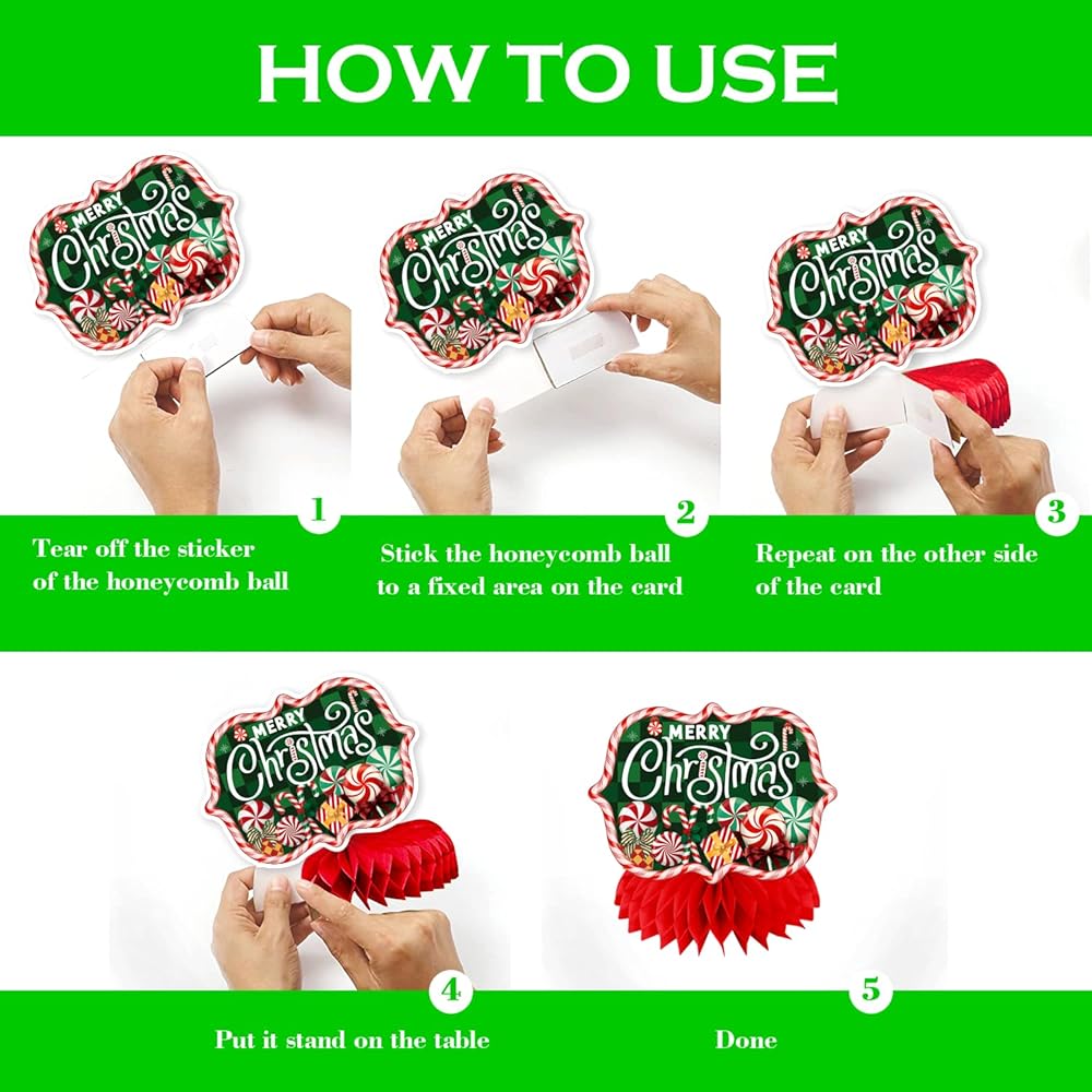 سهلة التجميع: يمكن تجميع القطع المركزية لعيد الميلاد للطاولات وفقًا للصور في ثوانٍ معدودة، ثم وضعها في منطقة العرض المفضلة لديك لتزيين حفلتك بسهولة، مما يوفر الوقت والجهد. تعتبر زينة حفلات عيد الميلاد للديكور الداخلي لشجرة عيد الميلاد على شكل قرص العسل، إضافات جميلة إلى الطاولة، وستبدو رائعة في زينة عيد الميلاد الورقية للطاولة في حفلات الزفاف الشتوية. اطلب ديكور طاولة عيد الميلاد لقطع مركزية لحفلات عيد الميلاد للطاولات