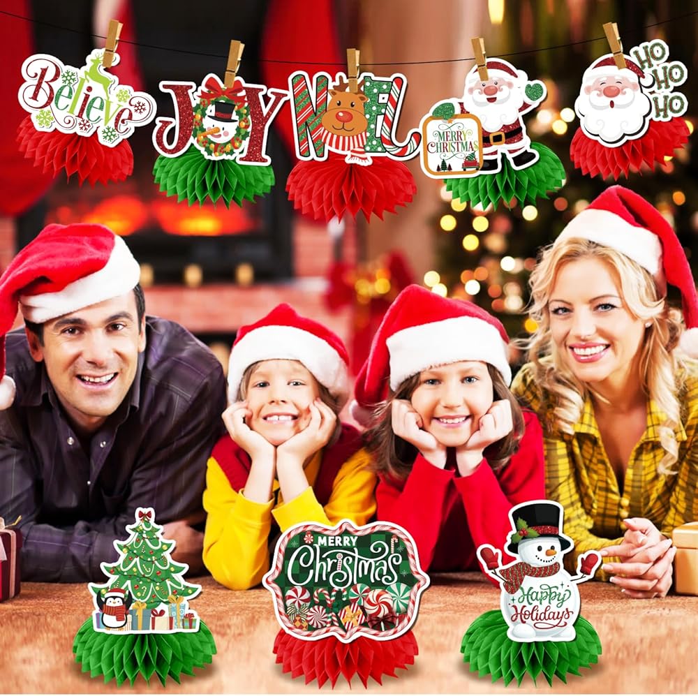 مناسبات متعددة: لقد صممنا جميع أنواع المطبوعات لديكورات حفلات عيد الميلاد هذه للبالغين، وتتوافق الألوان بشكل متناغم ومشرق ولطيف، والتي يمكن أن تمنحك رائحة الشتاء وتضيف المزيد من الألوان إلى حفلتك. يمكن تطبيق ديكورات الطاولة لحفلات عيد الميلاد في معظم الحفلات، مثل قطع مركزية لعيد الميلاد للطاولات، وديكورات طاولة مركزية لعيد الميلاد، وديكورات مكتب عيد الميلاد. احصل على ديكورات حفلات على شكل قرص العسل لديكورات عيد الميلاد الداخلية