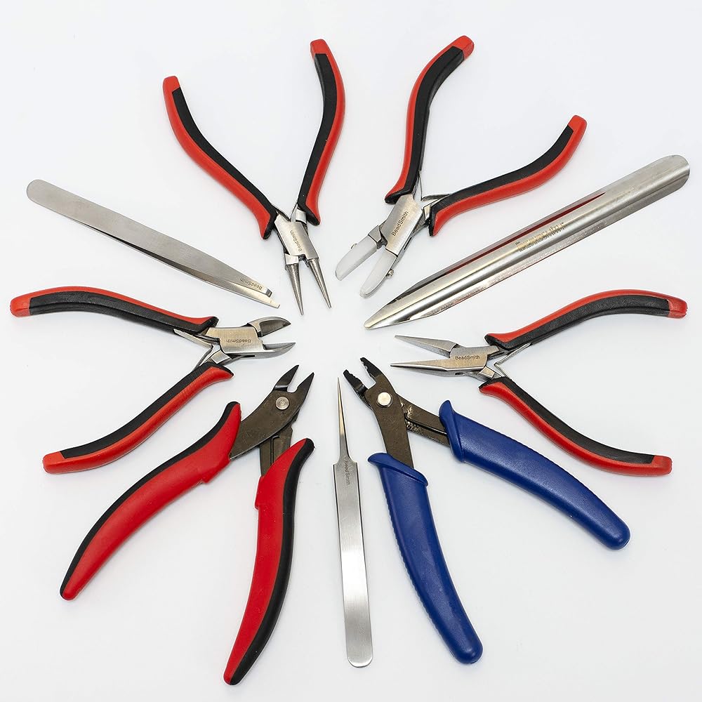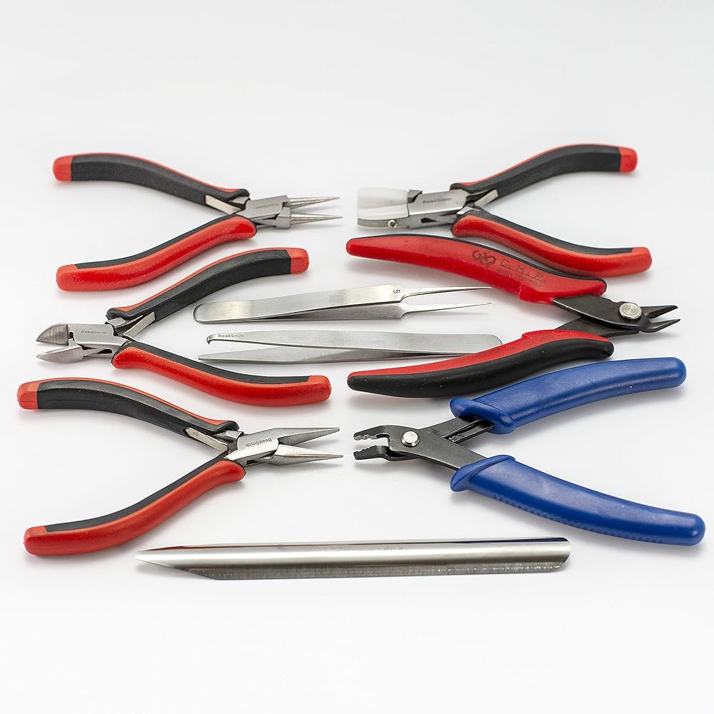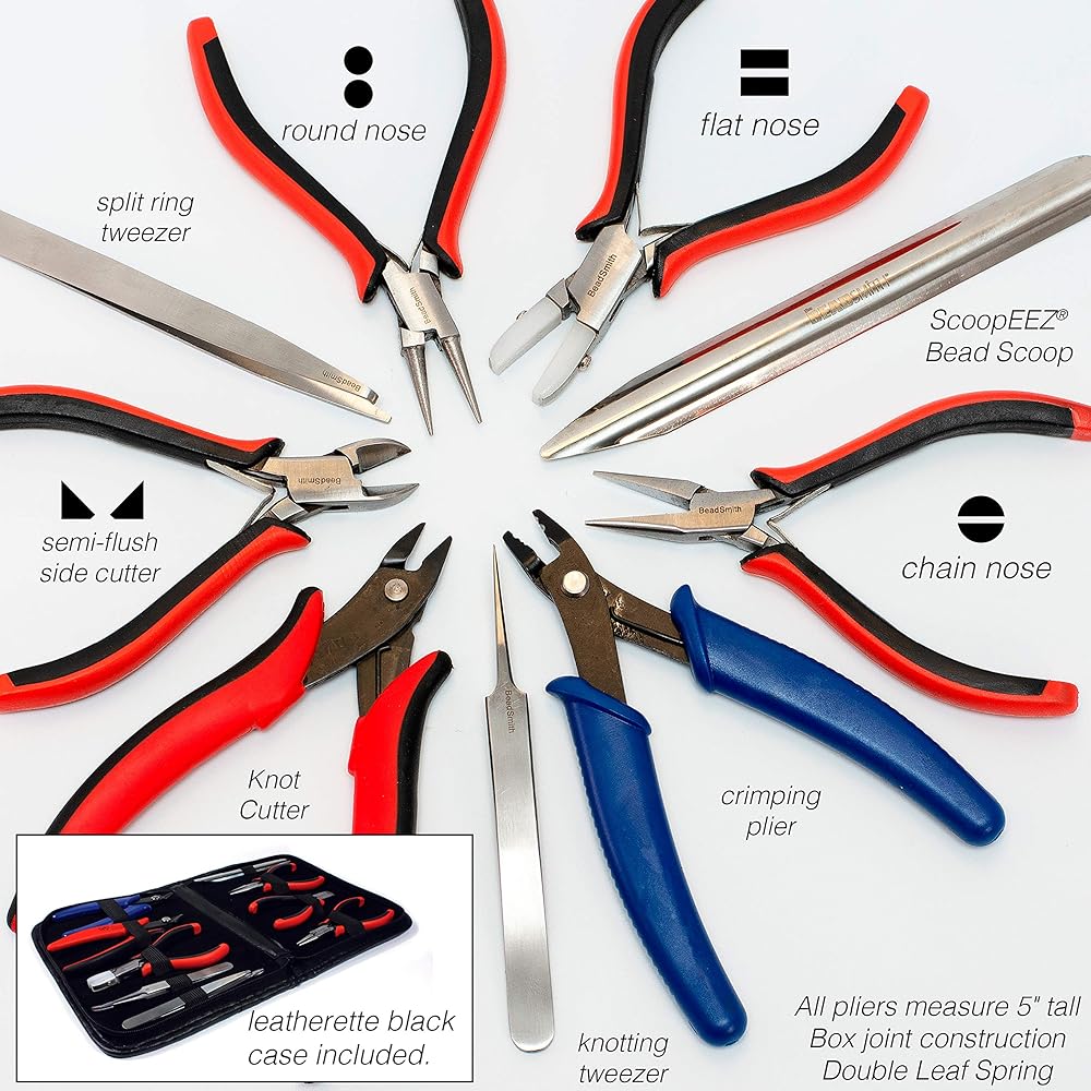 الأداة المناسبة للعمل الصحيح: تتضمن مجموعة الأدوات الفاخرة هذه المكونة من 9 قطع زرادية مريحة على شكل سلسلة وكماشة مستديرة الأنف وقاطع جانبي من كربيد التنجستين وزردية أنف مسطحة من النايلون وقاطع عقد. تتضمن أيضًا كماشة تجعيد وملاقط معقودة وملاقط حلقية منفصلة ومغرفة خرز سكوبيز.