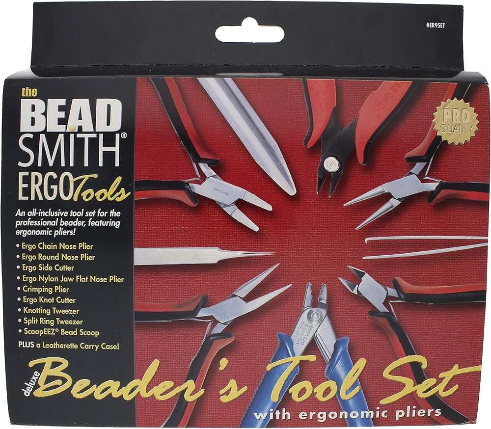تم تصميم مجموعة أدوات ذا بيد سمث Deluxe Ergo المكونة من 9 قطع لتسهيل إصلاح المجوهرات وتحسينها وإبداعها، وهي إضافة ممتازة لأي لوازم صنع المجوهرات أو إصلاح المجوهرات. مصنوعة من مواد عالية الجودة، هذه الأدوات متينة وشديدة التحمل ومصممة لتدوم طويلاً. احصل على 9 قطع بالإضافة إلى حقيبة حمل جلدية صغيرة. تتضمن زرادية بأنف سلسلة، زرادية مستديرة الأنف، زرادية تقطيع جانبية، كماشة من النايلون ذات فتحة مسطحة، كماشة عقدة، ملاقط عقدة، ملاقط عقدة وحلقات مقسمة، ومغرفة خرز. تتميز الكماشة الخاصة بنا بمقابض مريحة لتحسين قبضتك وتتميز بإطار معدني شديد التحمل لإطالة العمر. سواء كنت فنانة مجوهرات محترفة أو محترفة هواة، فإن مجموعة أدوات الكماشة هذه تمثل إضافة رائعة لمستلزماتك الفنية والحرفية. مصممة للمساعدة في قطع المجوهرات المعقدة والخرز - حتى سلاسل البريد والكفالة. نظرًا لأن هذه المجموعة متعددة الاستخدامات، فإنها تمثل هدية رائعة للكريسماس أو عيد الميلاد أو أي مناسبة خاصة. ساعد أصدقائك وعائلتك وأحبائك على تطوير مواهبهم الإبداعية والفنية مع هذه المجموعة الكاملة. يجعل من السهل صنع قطع جميلة من المجوهرات! بغض النظر عن نوع السلك الذي تستخدمه، فإن هذه الأدوات متينة ومصممة لتدوم طويلاً. لم يكن صنع المجوهرات والإكسسوارات العصرية بنفسك أسهل من أي وقت مضى! يمكنك ثني الأسلاك أو لفها أو فردها أو لفها أو لفها في أي وقت من الأوقات. يجب أن تكون هوايتك ممتعة وبسيطة. لا تقبل بالأدوات القديمة التي تنكسر بسهولة - هذه المجموعة من الكماشات شديدة التحمل ومريحة وسهلة الاستخدام لصناعة المجوهرات.