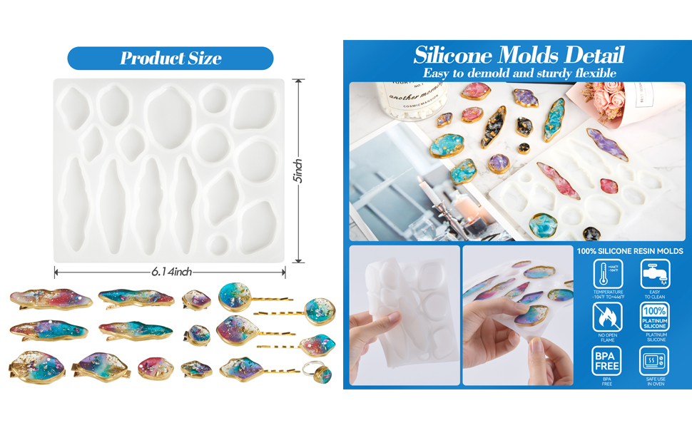• 【قوالب سيليكون للراتنج】- قوالب سيليكون الراتنج مصنوعة من السيليكون المتين بتقنيات متقدمة. مع قوالب الإيبوكسي المرنة والناعمة والقابلة لإعادة الاستخدام، ناعمة وخفيفة، يمكنك استخدامها وفك القالب وتنظيفها بسهولة.