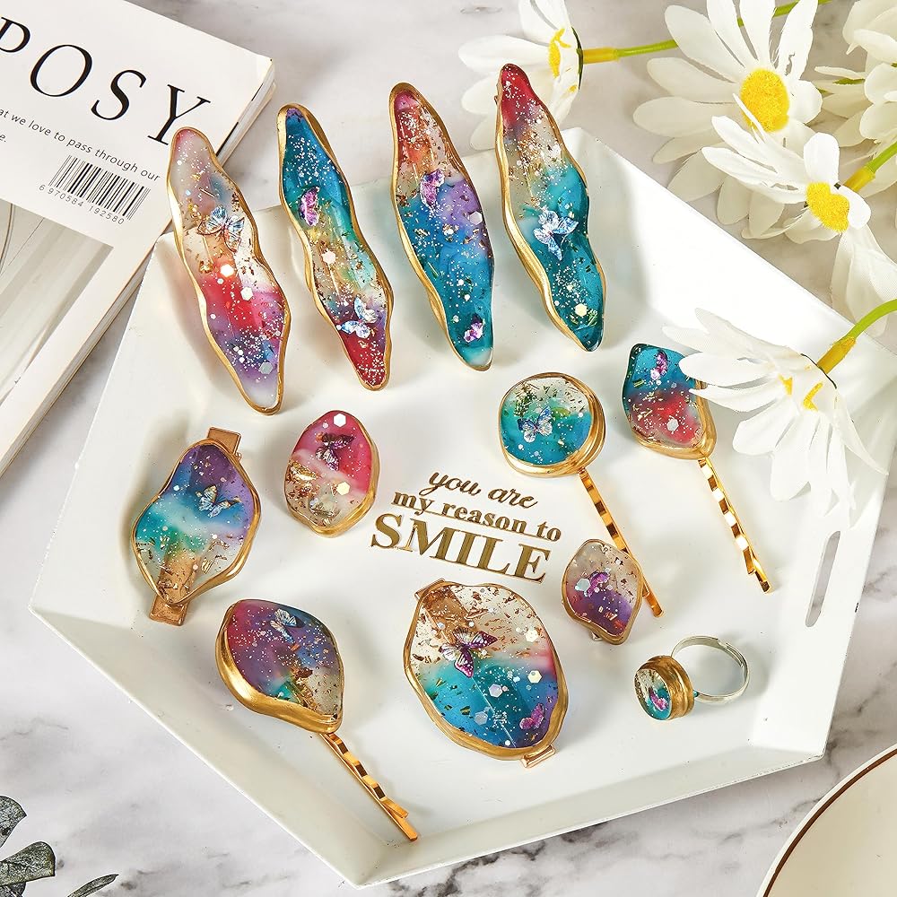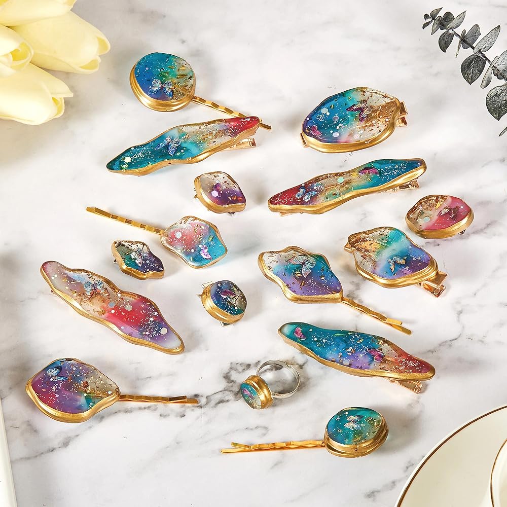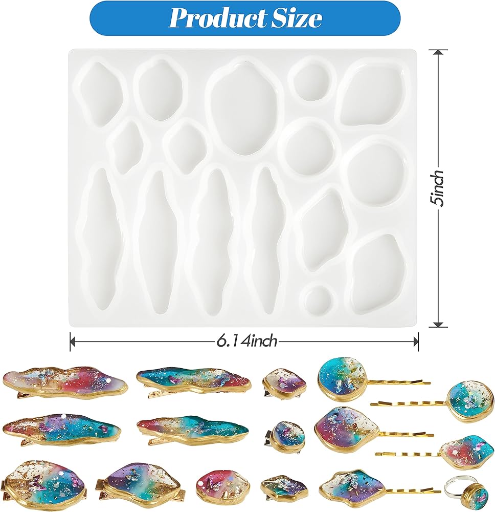 قوالب راتنج للمجوهرات من بيس سيركل مصنوعة من السيليكون لصب الراتنج، قوالب سيليكون لصب مشابك الشعر، دبابيس، قلادات المجوهرات، مشابك الشعر التي تصنعها بنفسك، قوالب الراتنج مع 16 مشبك شعر