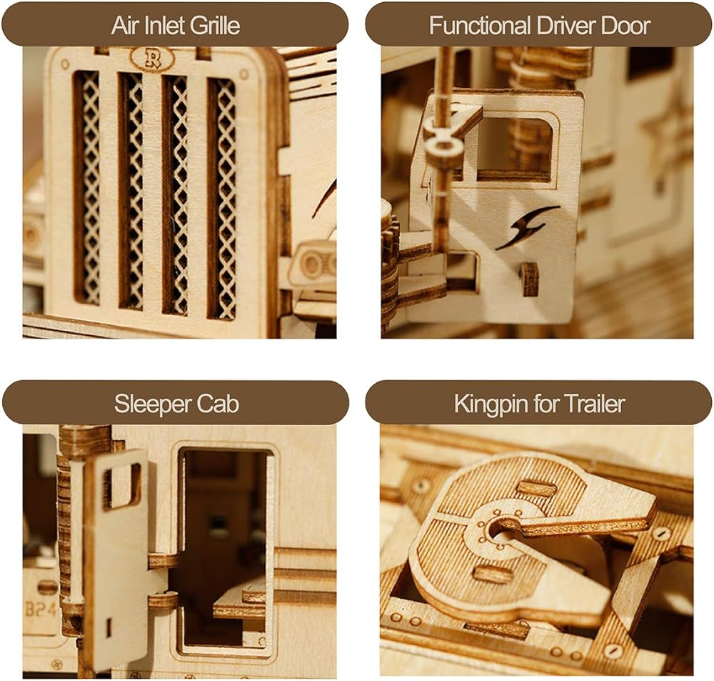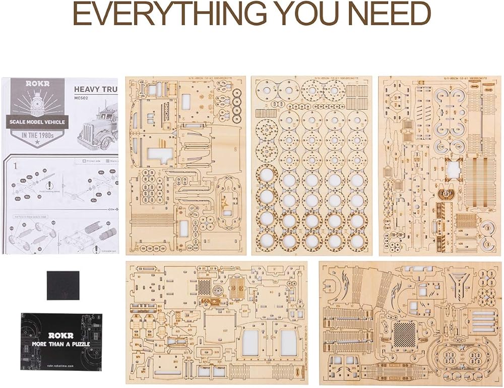 أحجية خشبية ثلاثية الأبعاد من ROKR للبالغين - مجموعات نماذج السيارات الميكانيكية - ألغاز تحفيز الدماغ - مجموعات بناء المركبات - هدية فريدة للأطفال في عيد الميلاد/عيد الميلاد (مقياس 1:40) (MC502-شاحنة ثقيلة)