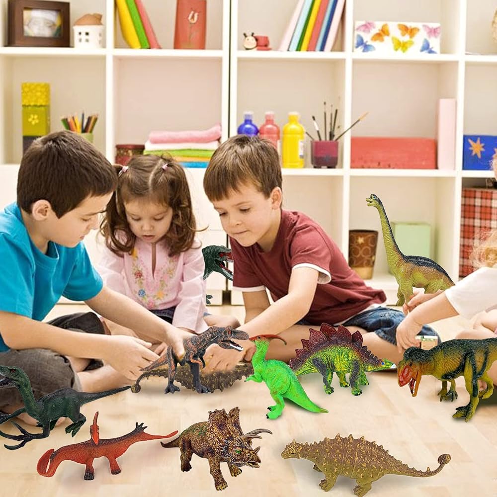 ألعاب الديناصور متينة ومشرقة وملونة، وتصمد بشكل مثالي. مجموعة رائعة على شكل ديناصور لمحبي الديناصور.