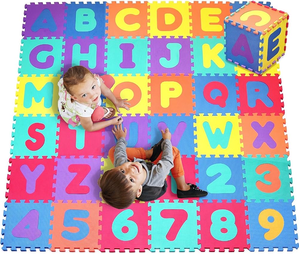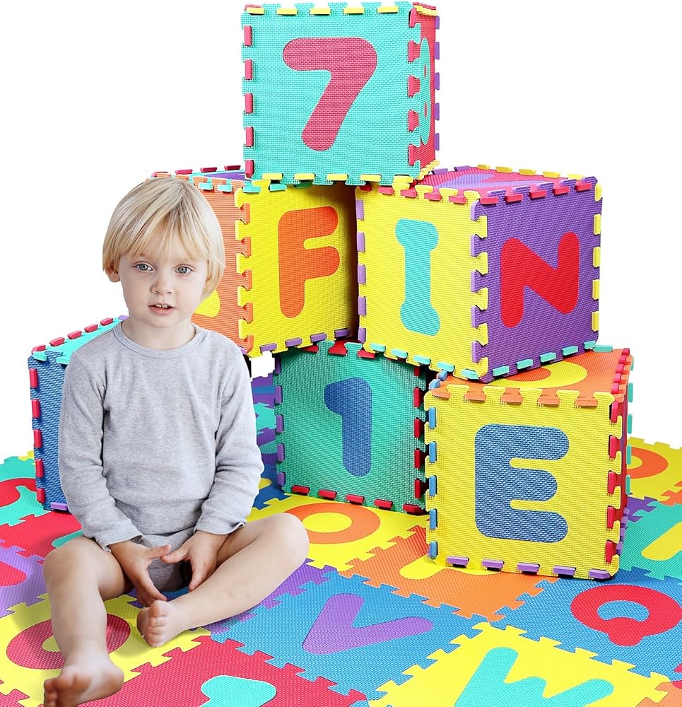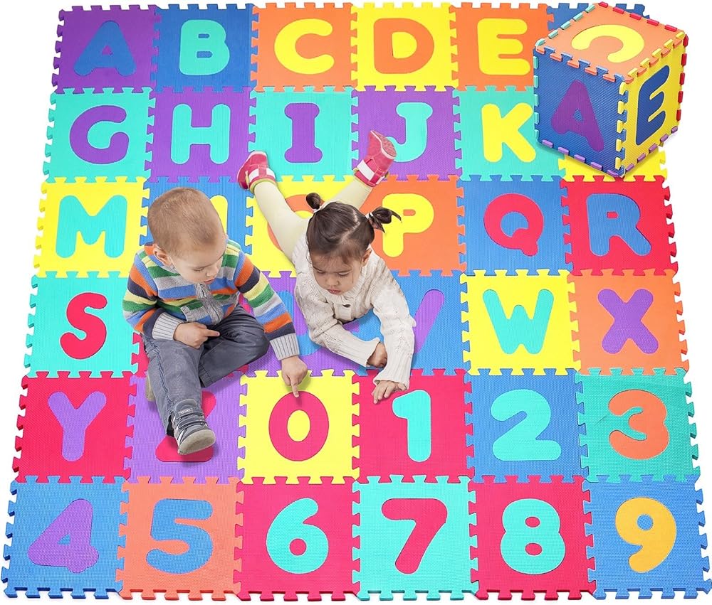 36 قطعة من بساط لغز إسفنجي مع حروف وأرقام قابلة للإزالة