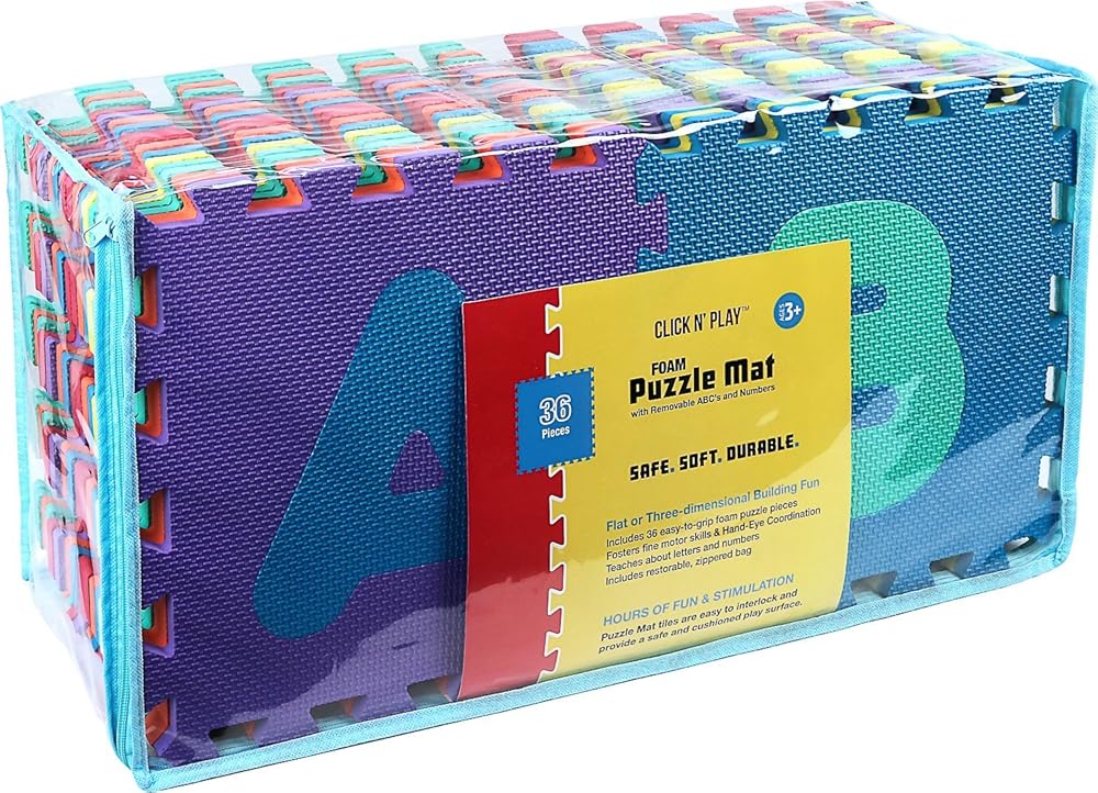 إن بساط ألغاز كليك آن بلاي معروفة بجودتها وسلامتها ومتانتها في جميع أنحاء العالم، ولذلك فإنها تستخدم في العديد من المدارس ودور ما قبل المدرسة لأنها تدوم طويلاً! بساط ألغاز «كليك آن بلاي» هو بساط البلاط الأول من كليك آن بلاي ويتضمن كلاً من الحروف الكبيرة بالإضافة إلى الأرقام. هذه السجادات السميكة سهلة الغسل يدويًا بالصابون والماء ويمكن غمرها إذا كنت تريد غسلها في الحوض. عند تجميعه في مربع، فإن بساط ألغاز «كليك آند بلاي» هو بساط كبير بحجم 182.88 سم × 182.88 سم، على الرغم من أنه يمكنك تجميع البلاط المربع مقاس 36 و30.48 سم بأي شكل ترغب في ملاءمته لاحتياجاتك. كل بلاطة وحروف وأرقام مزخرفة في الأعلى ولها قاعدة مقاومة للانزلاق. يمكن خلط بساط ألغاز كليك آن بلاي ومطابقته لتنمو احتياجاتك أو لمزيد من التنوع.