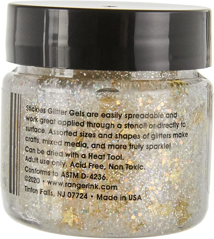 يمكن توزيع المواد الهلامية اللامعة من Stickles بسهولة ويتم تطبيقها بشكل رائع من خلال الاستنسل أو مباشرة على السطح. أحجام وأشكال متنوعة من اللمعان تجعل الحرف اليدوية والوسائط المختلطة وأكثر تألقًا حقًا! تحتوي هذه العبوة على 1 أونصة من الجل اللامع. غير سامة. خالى من الحمض. يتوافق مع ASTM D 4236. ويأتي في مجموعة متنوعة من الألوان. تباع كل منها على حدة. صنع فى أمريكا.