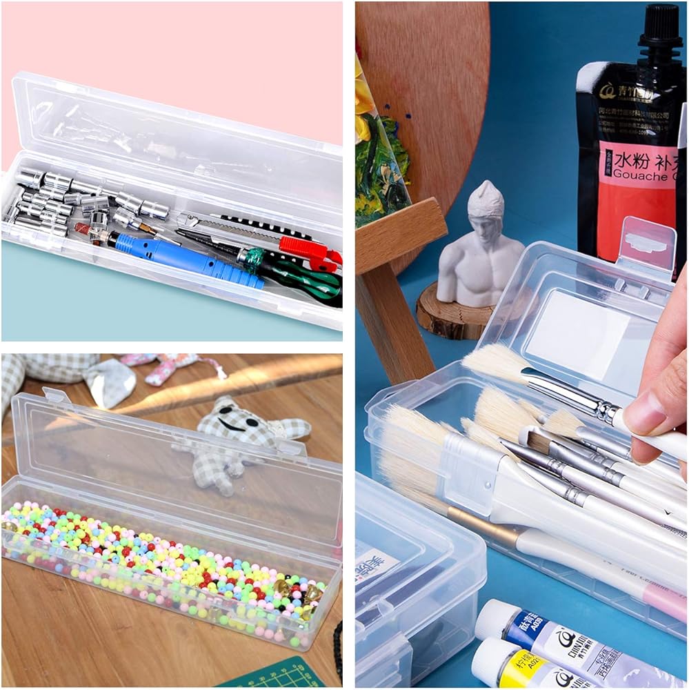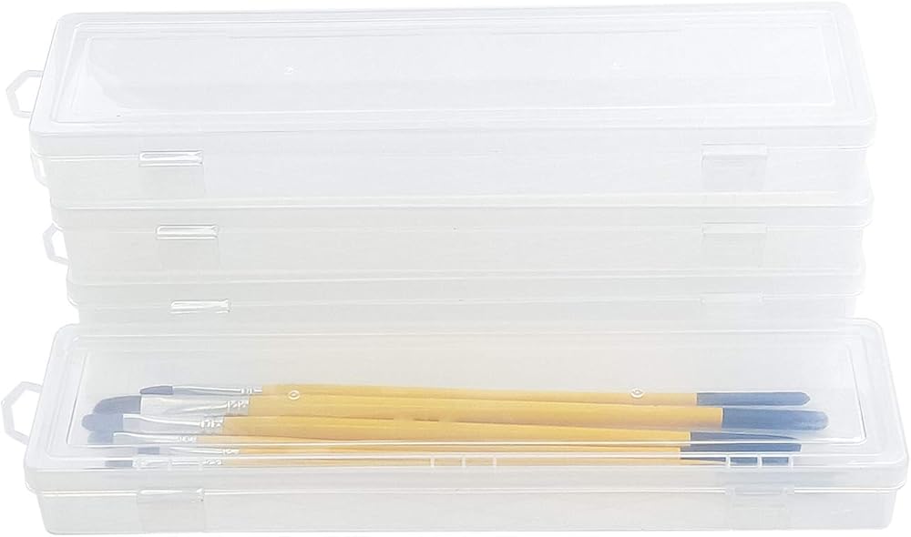 تحتوي العبوة على 4 قطع من صناديق فرش الطلاء البلاستيكية الطويلة، تلبي احتياجاتك المختلفة، سهلة التخزين والتنظيم، والتنظيف بقطعة قماش مبللة.
