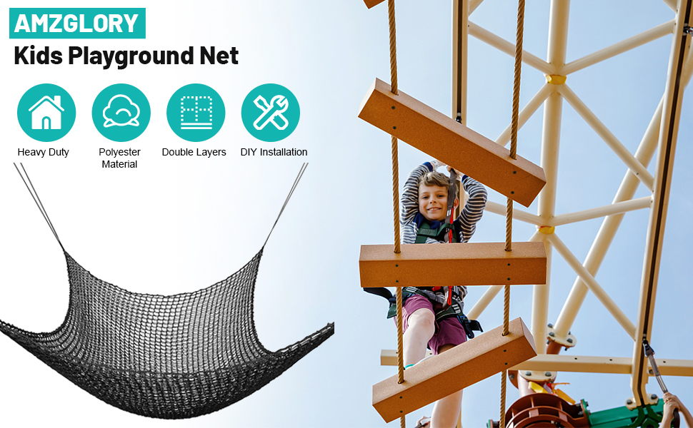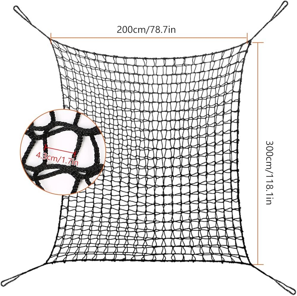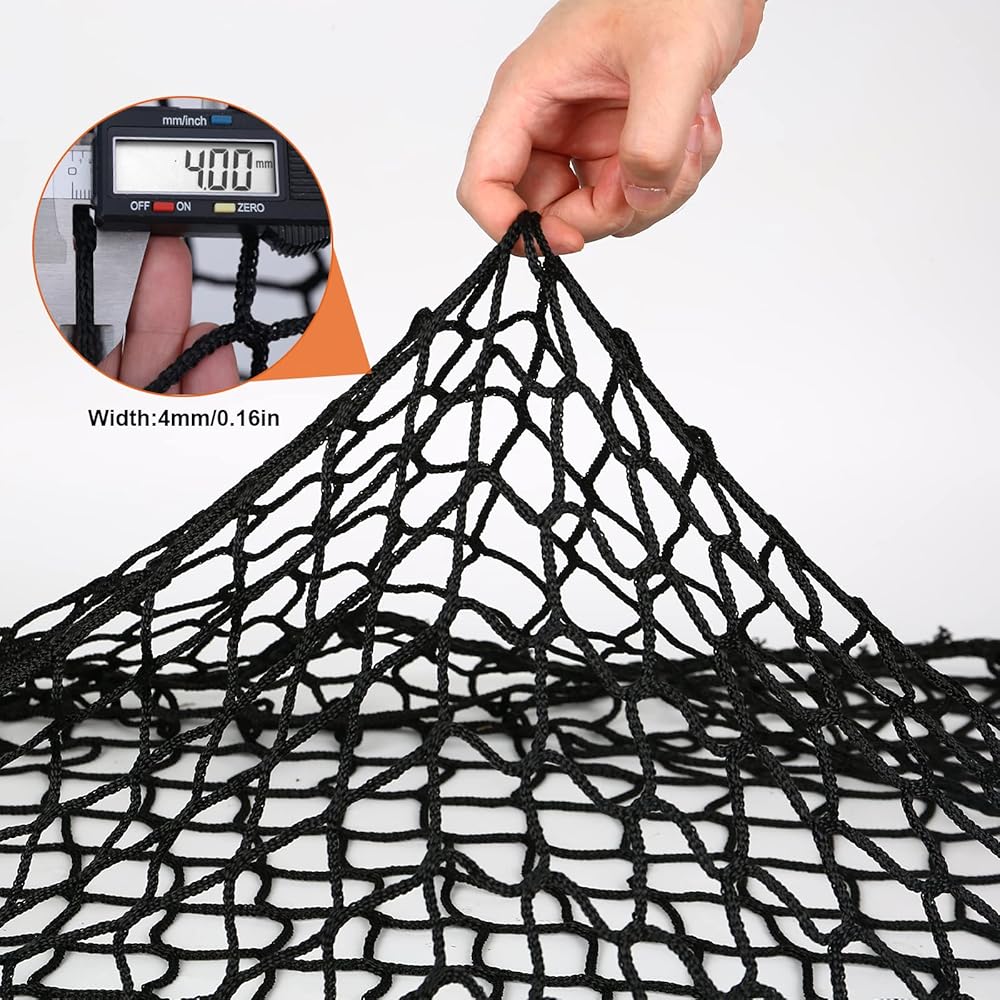 استوف احتياجاتك الشخصية: فهي تحتوي على 3 مقاسات مختلفة حسب اختيارك. 3.3 قدم * 9.9 قدم، 6.6 قدم * 9.9 قدم، 9.9 قدم * 9.9 قدم. قدرة التحمل: 500 رطل. حجم الشبكة 1.7 بوصة × 1.7 بوصة مثالي للأطفال