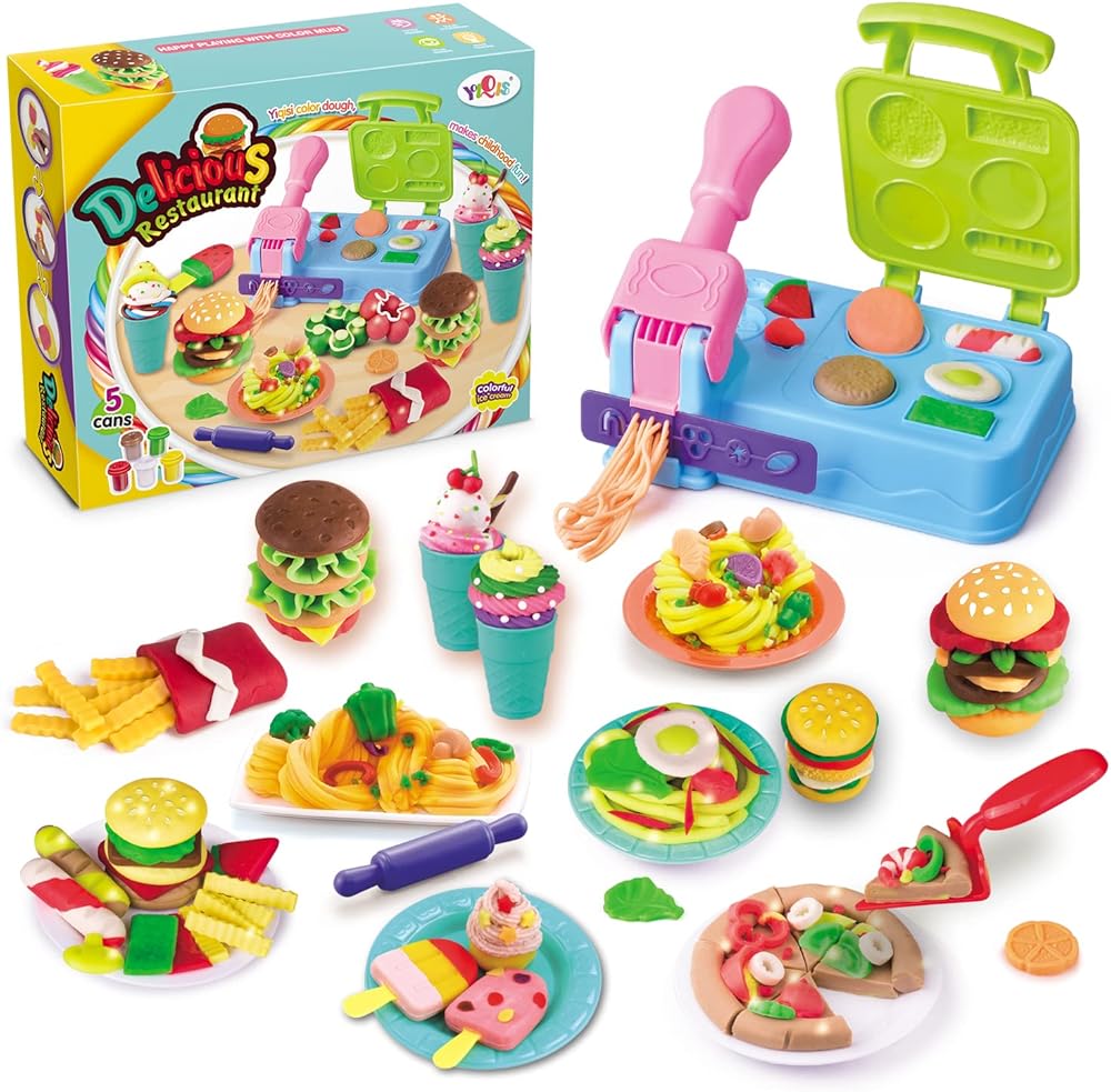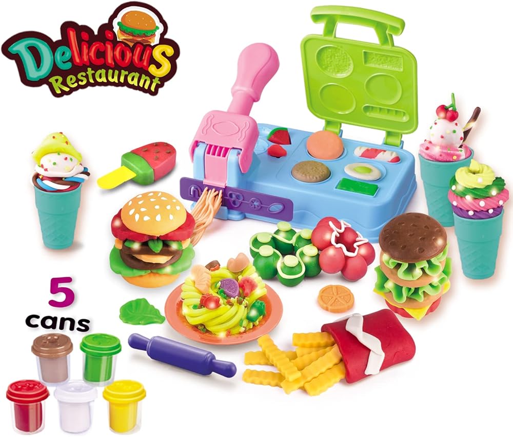 بوني توي لعبة بلاي كولور دو كيتشن كرييشنز للافطار والبرجر والمعكرونة والبيتزا، لعبة طبخ مستوحاة من لعبة الشواء والشواء للاطفال بعمر 3 سنوات فما فوق مع 5 الوان مركبة غير سامة