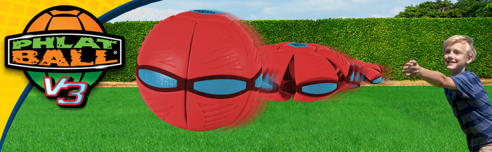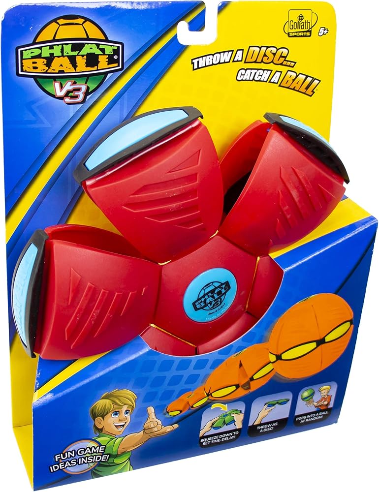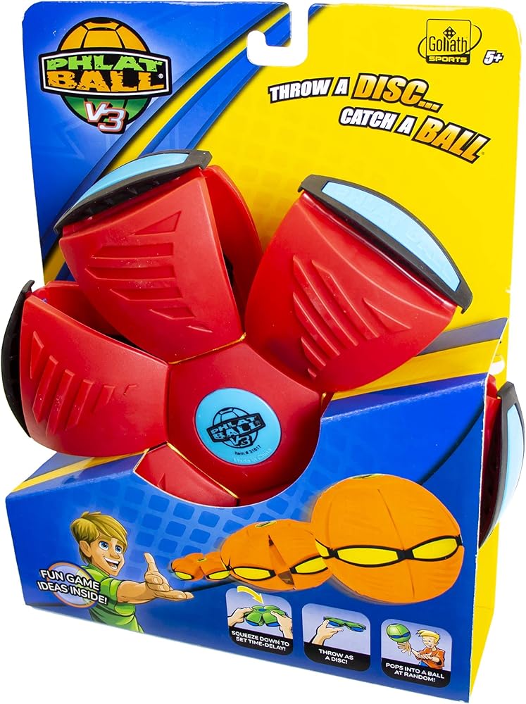 رمي القرص، والتقاط الكرة! تتحول Phlat Ball V3 من قرص طائر مقاس 9 بوصات إلى كرة مقاس 6 بوصات. يضيف التأخير الزمني العشوائي إلى المتعة والإثارة في اللعب. للأعمار من 5 سنوات فما فوق.