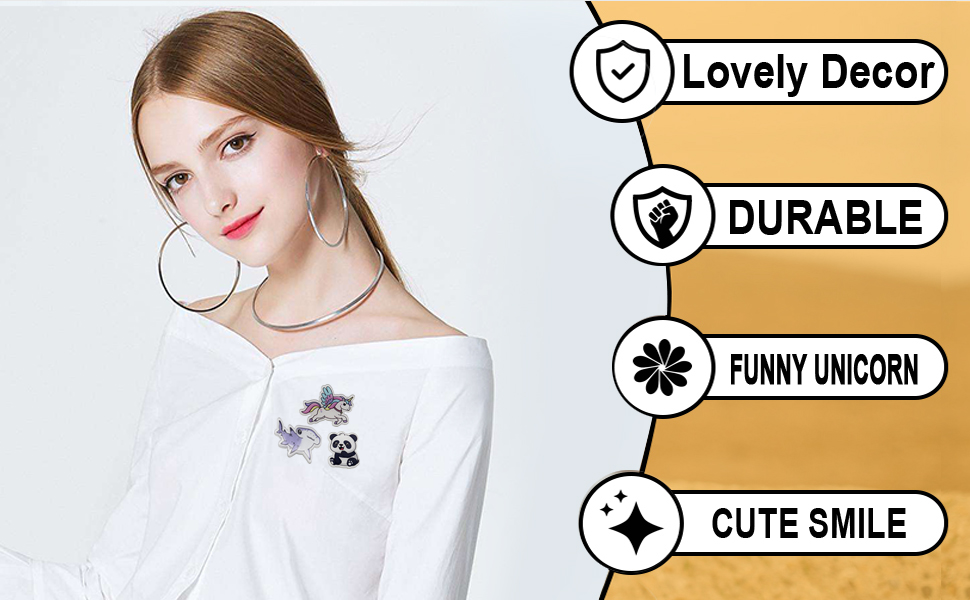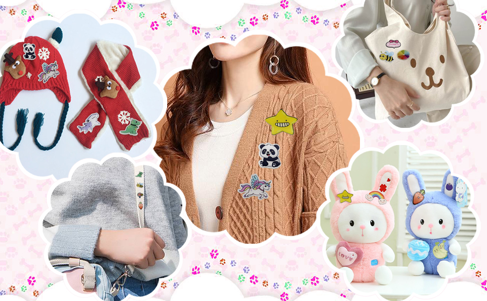 استخدام واسع: يمكن ربط هذه الدبابيس بأنماط مختلفة من الملابس والسترات وحقائب الظهر والقبعات وإضافة بعض التوابل إلى ملابسك. كما يمكن استخدامها للأعمال اليدوية وتقديمها كهدية لطيفة لأصدقائك وعائلتك.