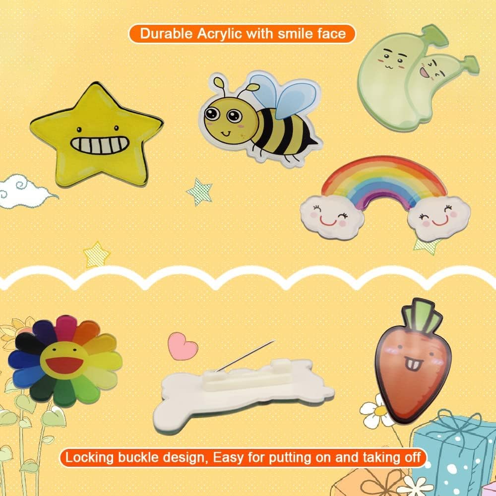 دبابيس اكريليك لطيفة بتصميم مبتسم للحقائب والوشاح والملابس وحقائب الظهر - تصميم خاص بعناصر يونيكورن