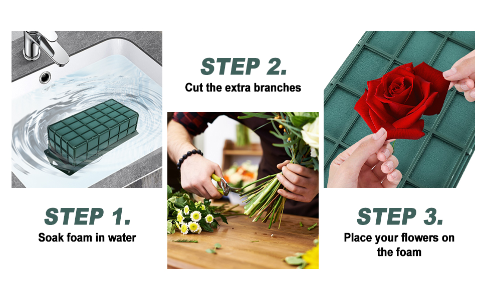 • رغوة الأزهار مصنوعة من الستايروفوم عالي الجودة، عديم الرائحة، ناعمة ومتينة، سهلة الامتصاص للماء والحفاظ على الماء للحفاظ على النباتات والأزهار طازجة.