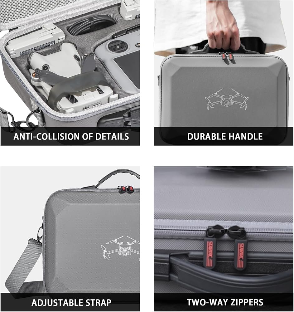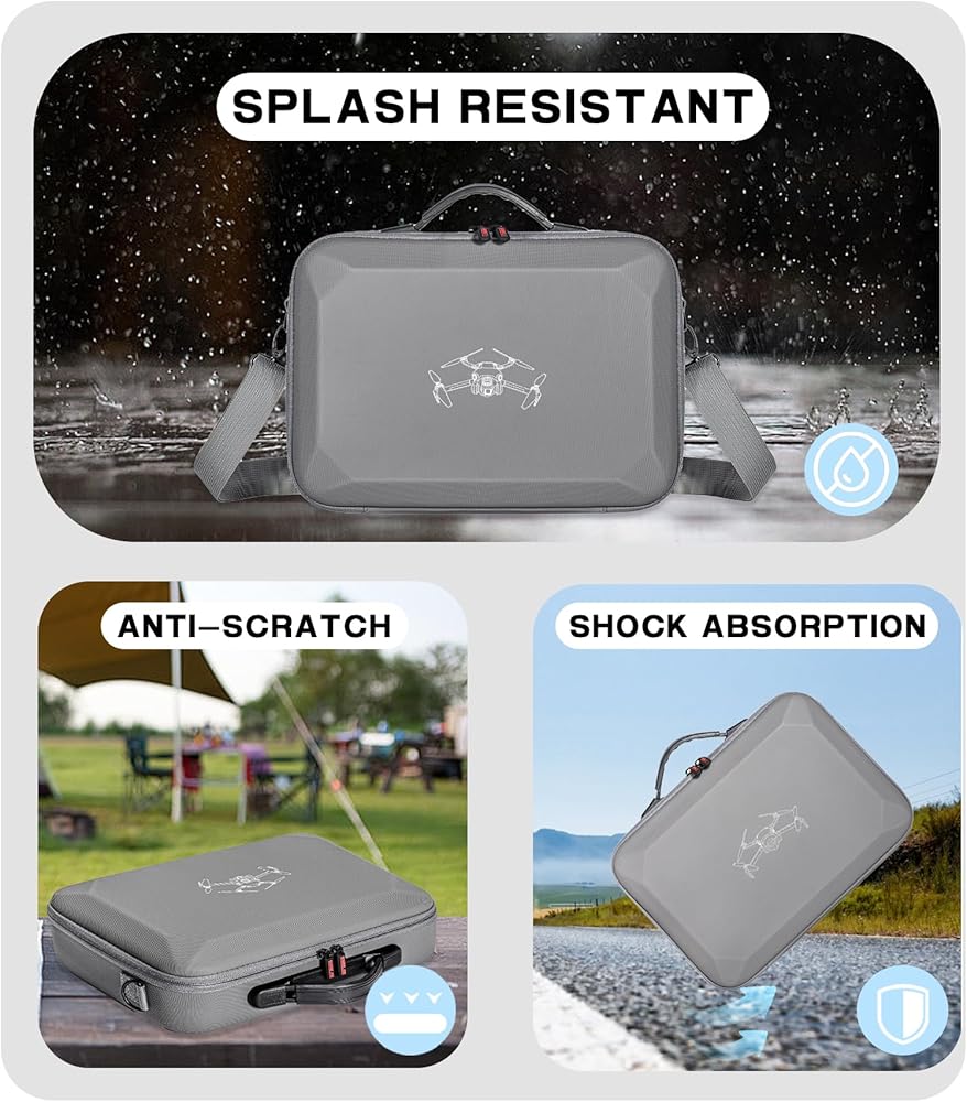 【Comprehensive Protection】 Made with a unique PU leather material, this hard shell case is water-resistant to keep your drone and other equipment safe from moisture. The soft spandex lining inside the case provides additional protection by cushioning your DJI Mini 4 Pro Fly More RC 2 Combo and accessories from damage during transportation and storage.