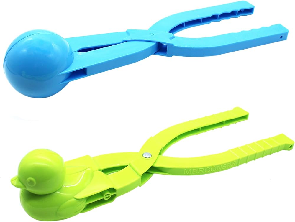 قطعتان من صانعة كرات الثلج، مشبك كبير لصانعة كرات الثلج في الشتاء، ألعاب الثلج على شكل بطة وكرة الثلج للأطفال في الهواء الطلق في الشتاء ألعاب الثلج (لون عشوائي)