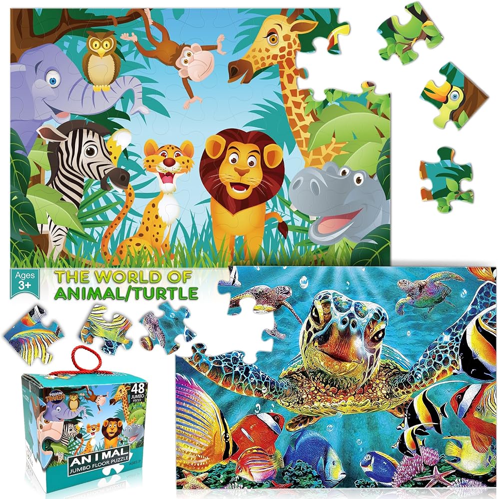 لغز مزدوج الجانبين جامبو الكلمة للأطفال الحيوان بانوراما الألغاز الكبيرة 48 قطعة الأعمار 3-5 للأطفال الصغار مرحلة ما قبل المدرسة ألعاب التنمية الفكرية التعليمية 4-8 سنوات هدية للبنين بنات