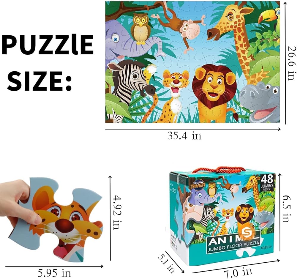• 【ألغاز أرضية من 48 قطعة للأطفال الصغار】: تتضمن المجموعة 48 قطعة من ألغاز الأرضية الضخمة مع رسوم توضيحية للحيوانات نابضة بالحياة وجذابة في مزيج من الألوان الرائعة. طباعة كرتونية لطيفة ستجذب انتباه الأطفال.