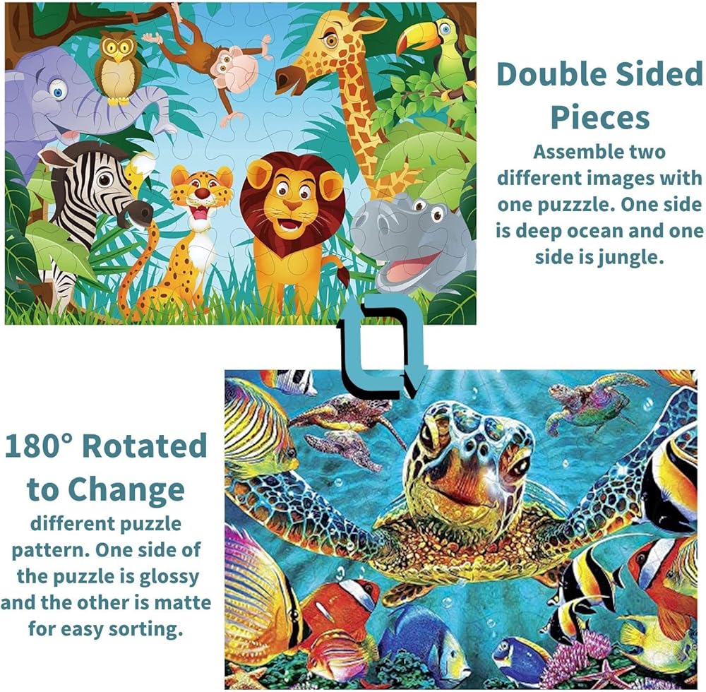 • 【لغز الصور المقطوعة للأطفال الصغار على الوجهين】: جانب واحد عبارة عن صور لحيوانات الغابة وعلى الجانب الآخر حيوانات بحرية. الألغاز الحيوانية ذات الوجهين للأطفال الذين تتراوح أعمارهم بين 4 و8 سنوات يمكن للأولاد والبنات أن تقدم تحديًا جديدًا وساعة ممتعة من المرح حيث يتم تزويدهم بضعف الترفيه في حزمة واحدة.