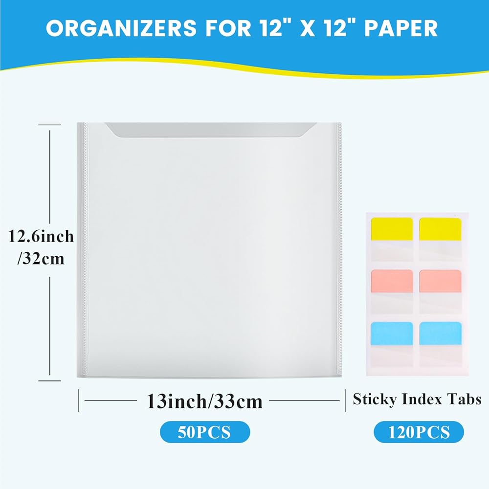 50 قطعة من تخزين ورق القصاصات من Aoibrloy مع 120 قطعة من علامات التبويب اللزجة منظم تخزين ورق القصاصات لحمل ورق القصاصات مقاس 12 × 12 بوصة وملفات الورق والبطاقات وورق الفينيل