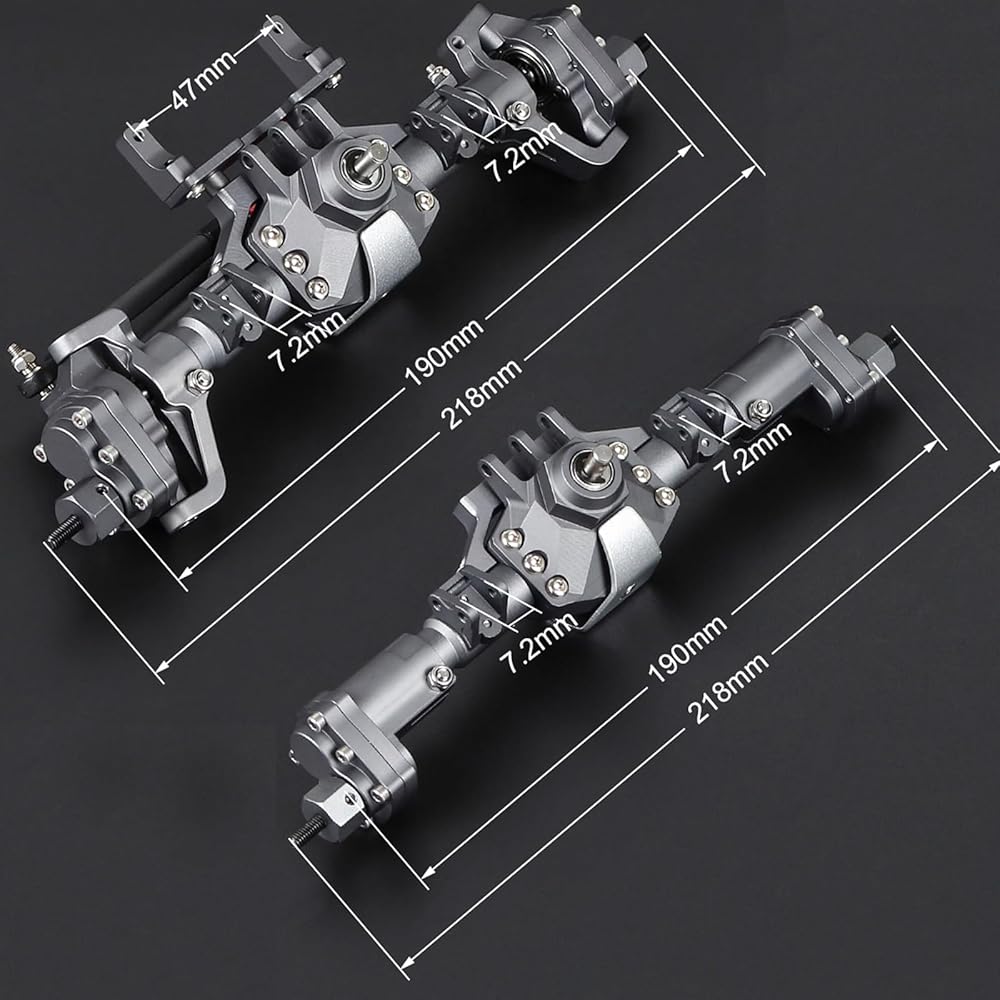 🚔🚔【Easy to Install】Front axle weight is 310g; Rear axle weight si 240g; Total Width: 218mm; Pin to Pin Width: 190mm;Total height added is 13mmn; 5mm Axle Output Shaft, 12mm Standard Hex, which can be directly installed, do need any modification.
