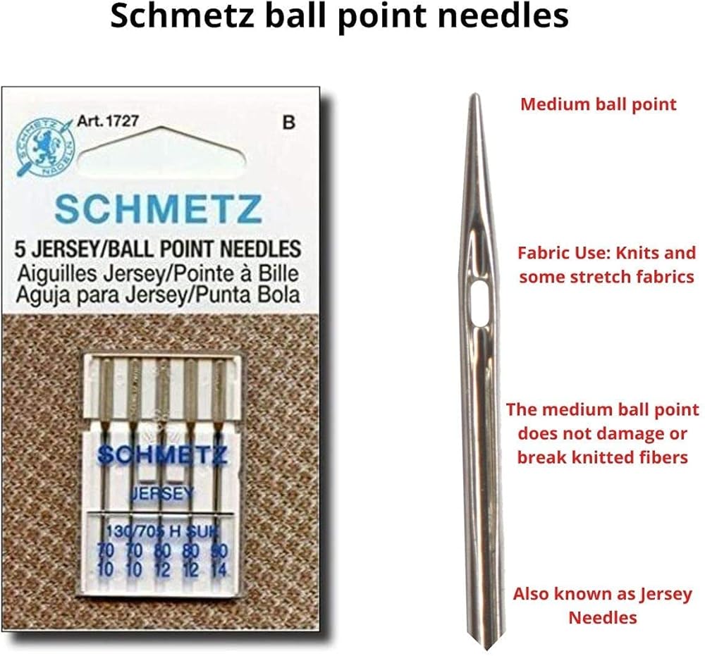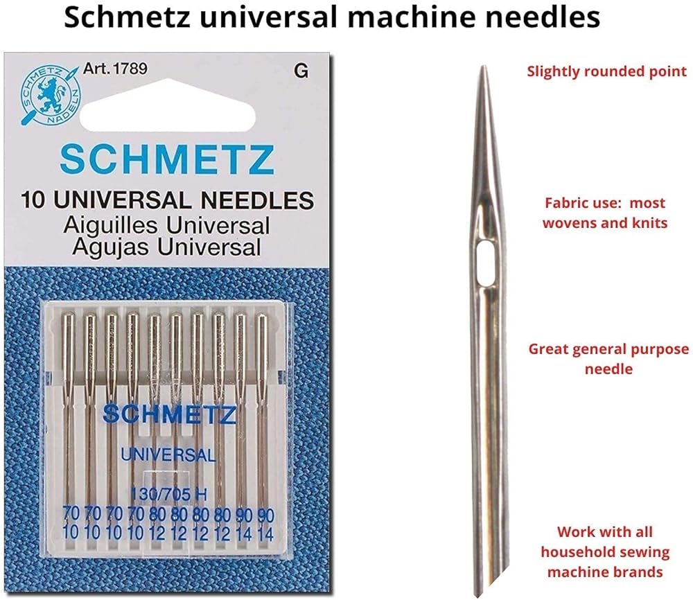 تم تصميم إبر شميتز العالمية ذات الرأس الكروي للاستخدام مع معظم الأقمشة المنسوجة والمحيكة. مصنوعة باستخدام سلك فولاذي عالي الكربون ممزوج بالنيكل. وهذا يجعلها قوية بشكل ملحوظ وصعبة الكسر. كما أنها لن تتآكل أو تصدأ لفترة طويلة جدًا.