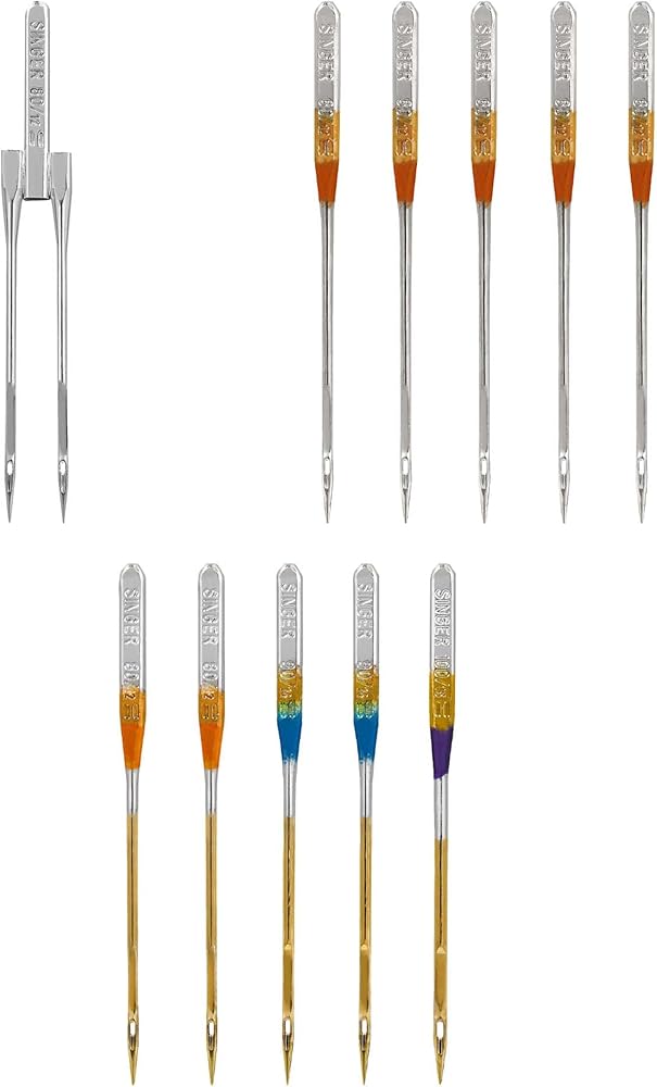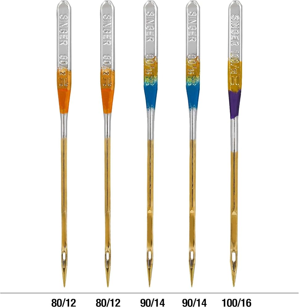 All needles are made of high quality cold forged steel to prevent needle breakage and skipped stitches and are color-coded for easy recognition during your sewing project; top color corresponds to the needle type and the bottom color corresponds to the needle size. Titanium needles can last 2x longer than the standard needle.