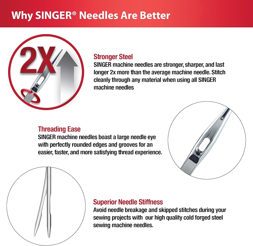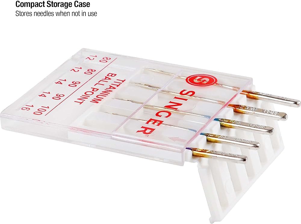 Each pack of machine needles come with a compact transparent case; To prevent needles from going dull when not in use, store needles in the compact transparent case which includes size marking on its cover