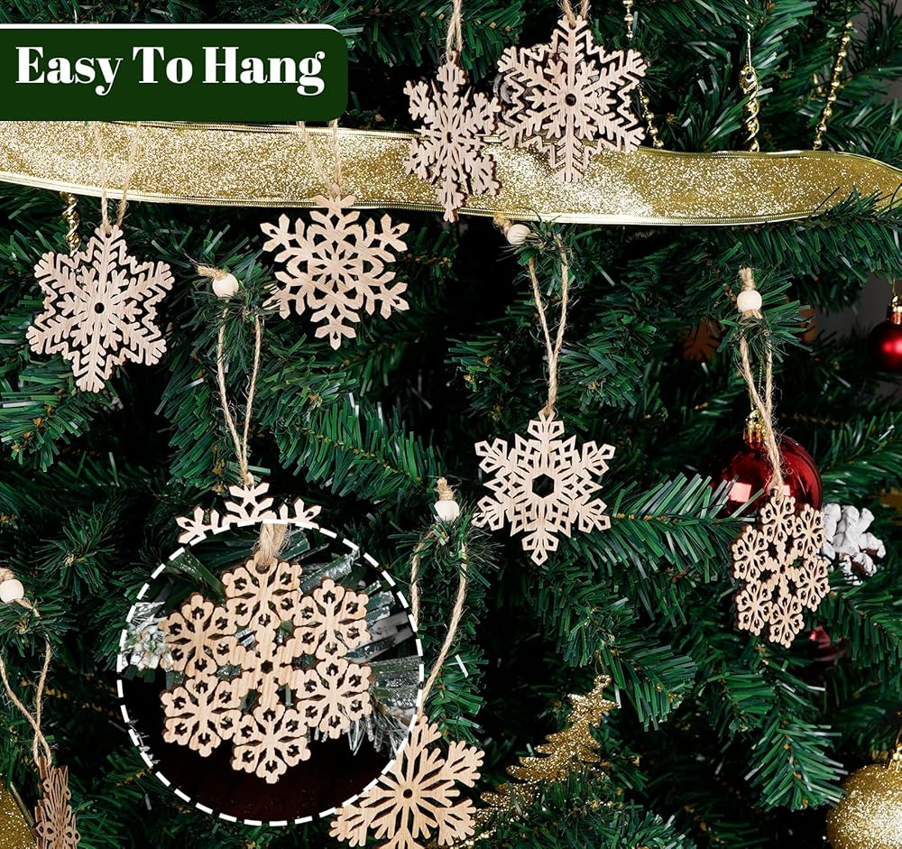 تطبيق واسع: المعلقات الخشبية لزينة عيد الميلاد مثالية للتعليق على أشجار عيد الميلاد، وأكاليل الميلاد، والأبواب والنوافذ، وتغليف الهدايا.