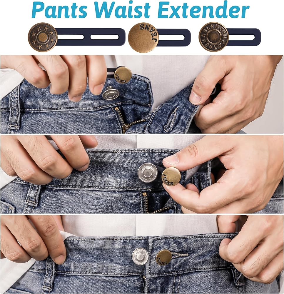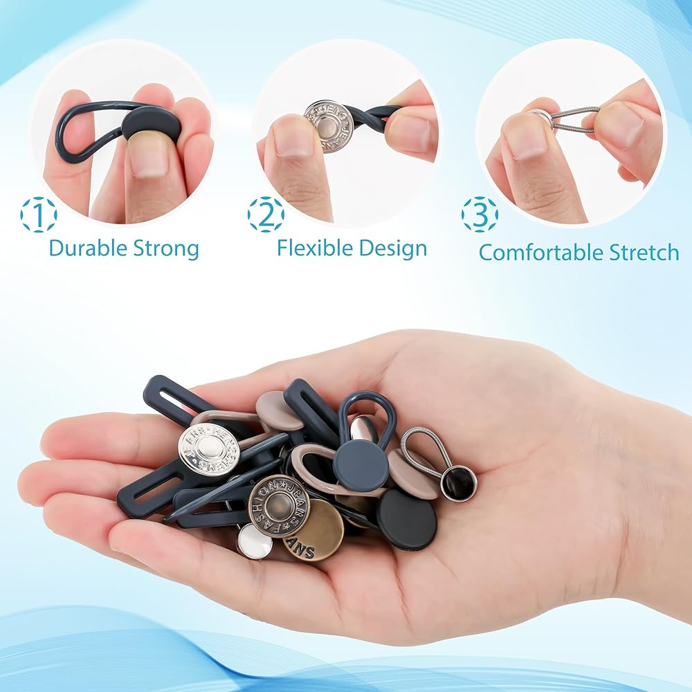 ما عليك سوى إخراج موسع زر الخصر من الصندوق، ووضعه على الزر، ويمكنك بسهولة جعل خصر البنطال مناسبًا بشكل أفضل.