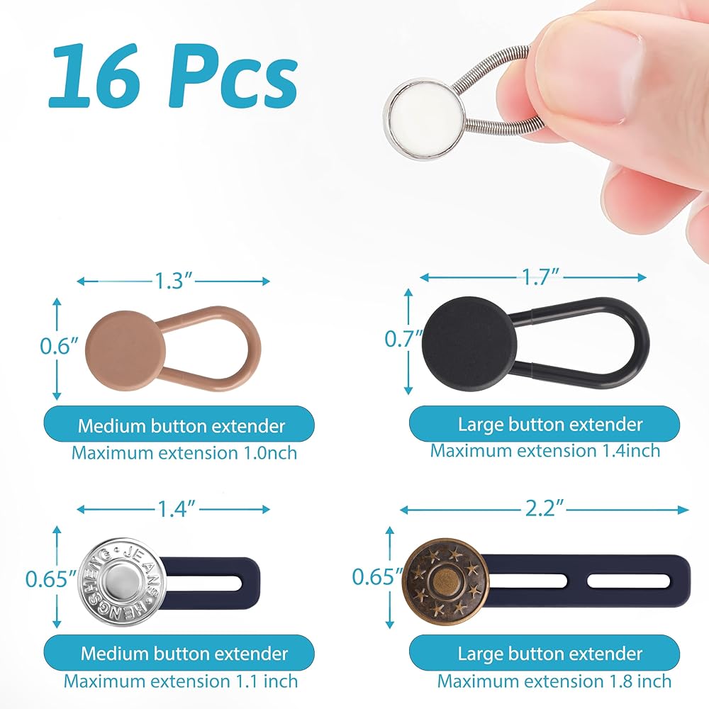 مجموعة ازرار تمديد للجينز، 16 قطعة من ازرار التمديد للرجال والنساء، ازرار تمديد حزام الخصر للجينز والبنطلونات، ازرار تمديد فورية لحزام الخصر بدون خياطة