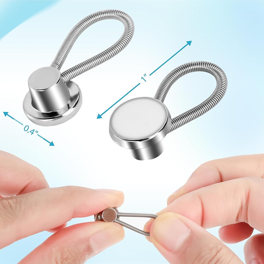 • 【سهلة الاستخدام】- لا تتطلب موسعات الأزرار المرنة هذه خياطة، فقط قم بتمرير موسع الزر فوق الزر الموجود وتوصيل الطرف الآخر بفتحة الزر لسهولة الاستخدام.