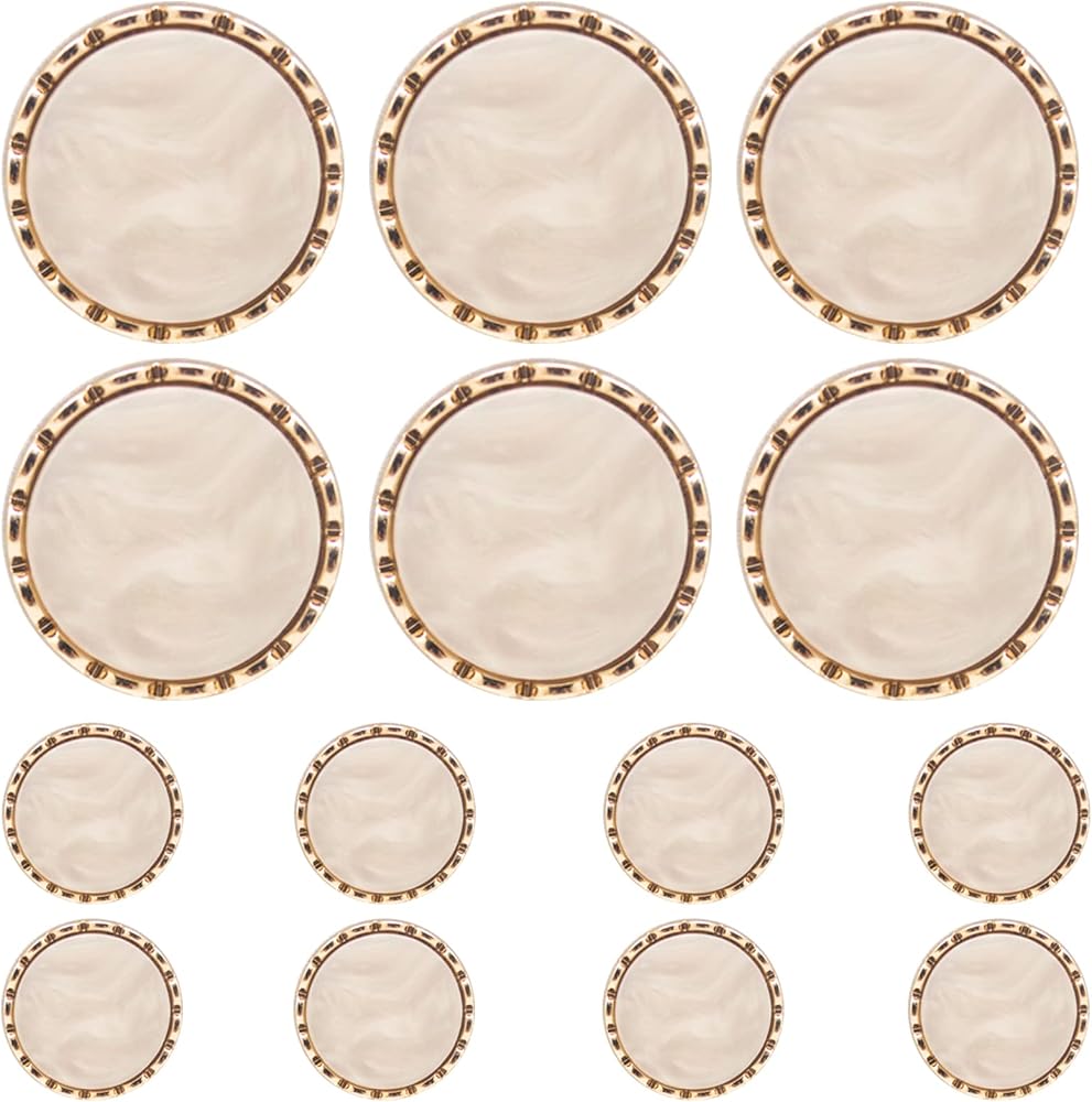 اف اند جي 14 قطعة زر مزيج من مادتين مجموعة أزرار بليزر عرقوب لخياطة المعاطف والبدلات والبليزر بمقاس 21 ملم و15 ملم (ذهبي + أبيض)